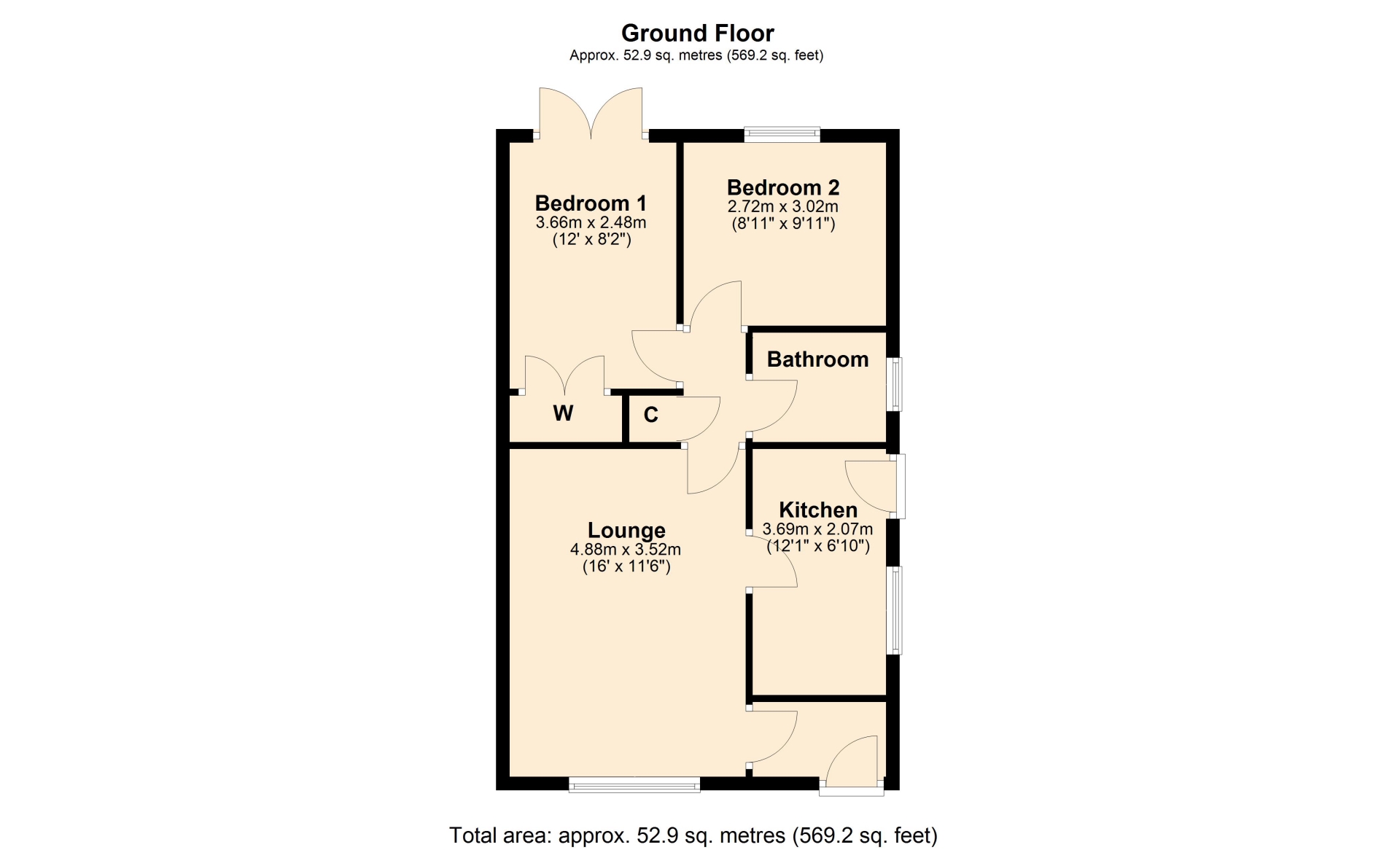 BEDROOM ONE 3.66m x 2.48m (12' x 8'1")