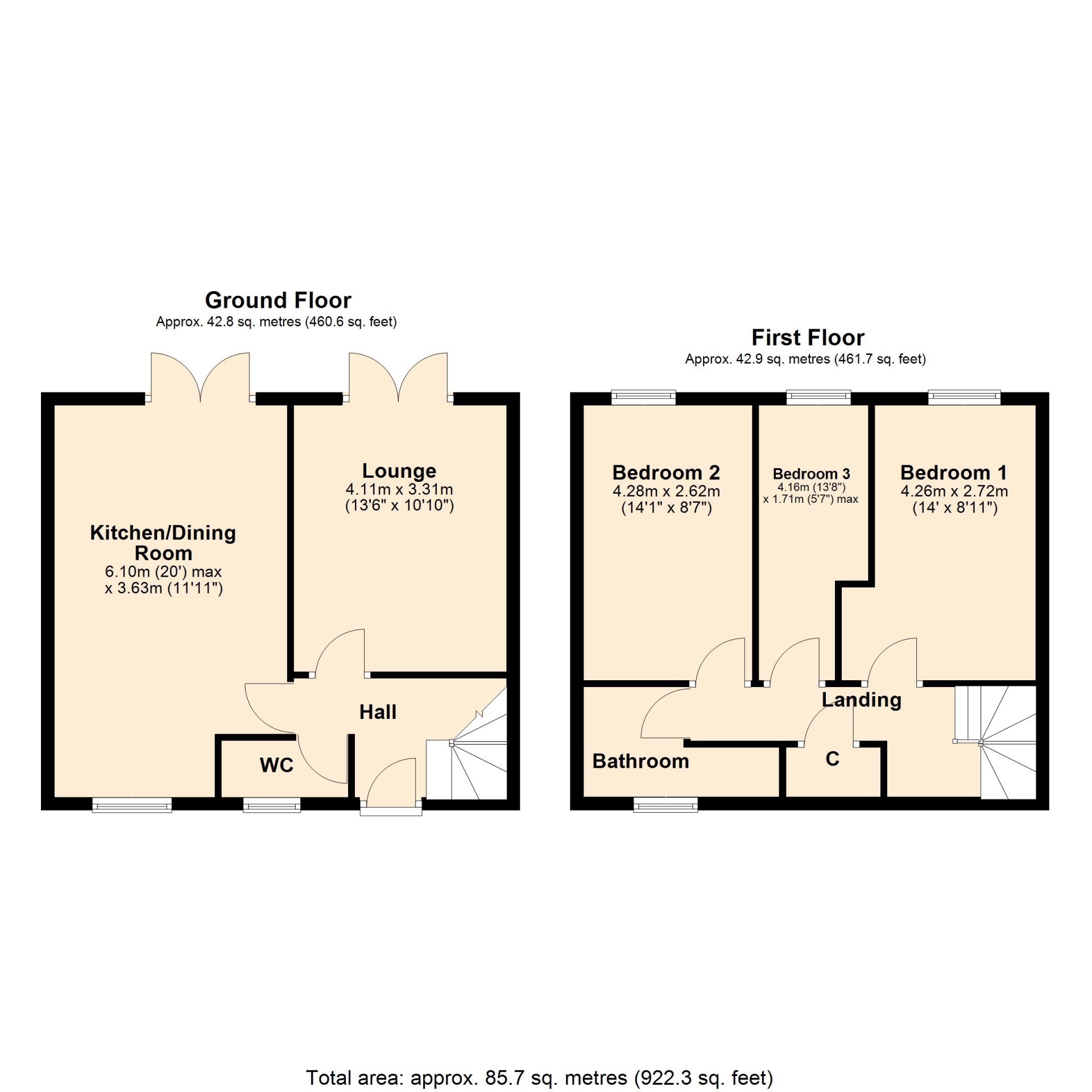 BEDROOM ONE 4.26m x 2.72m (13'11" x 8'11")