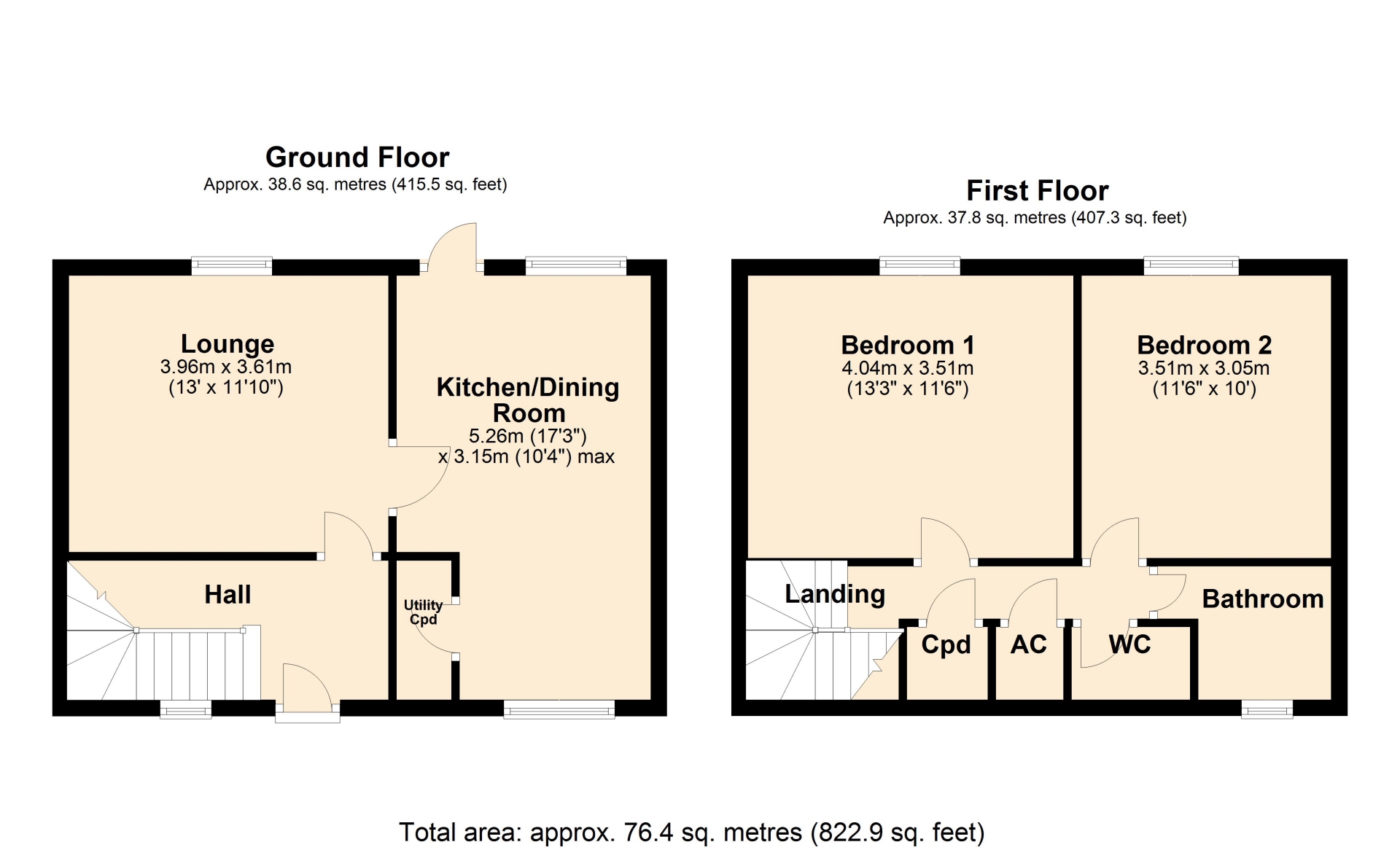 BEDROOM TWO 3.51m x 3.05m (11'6" x 10')