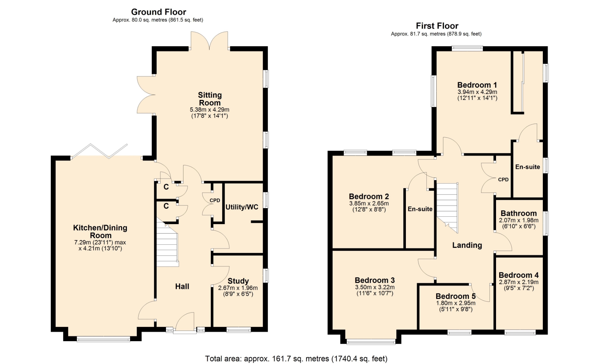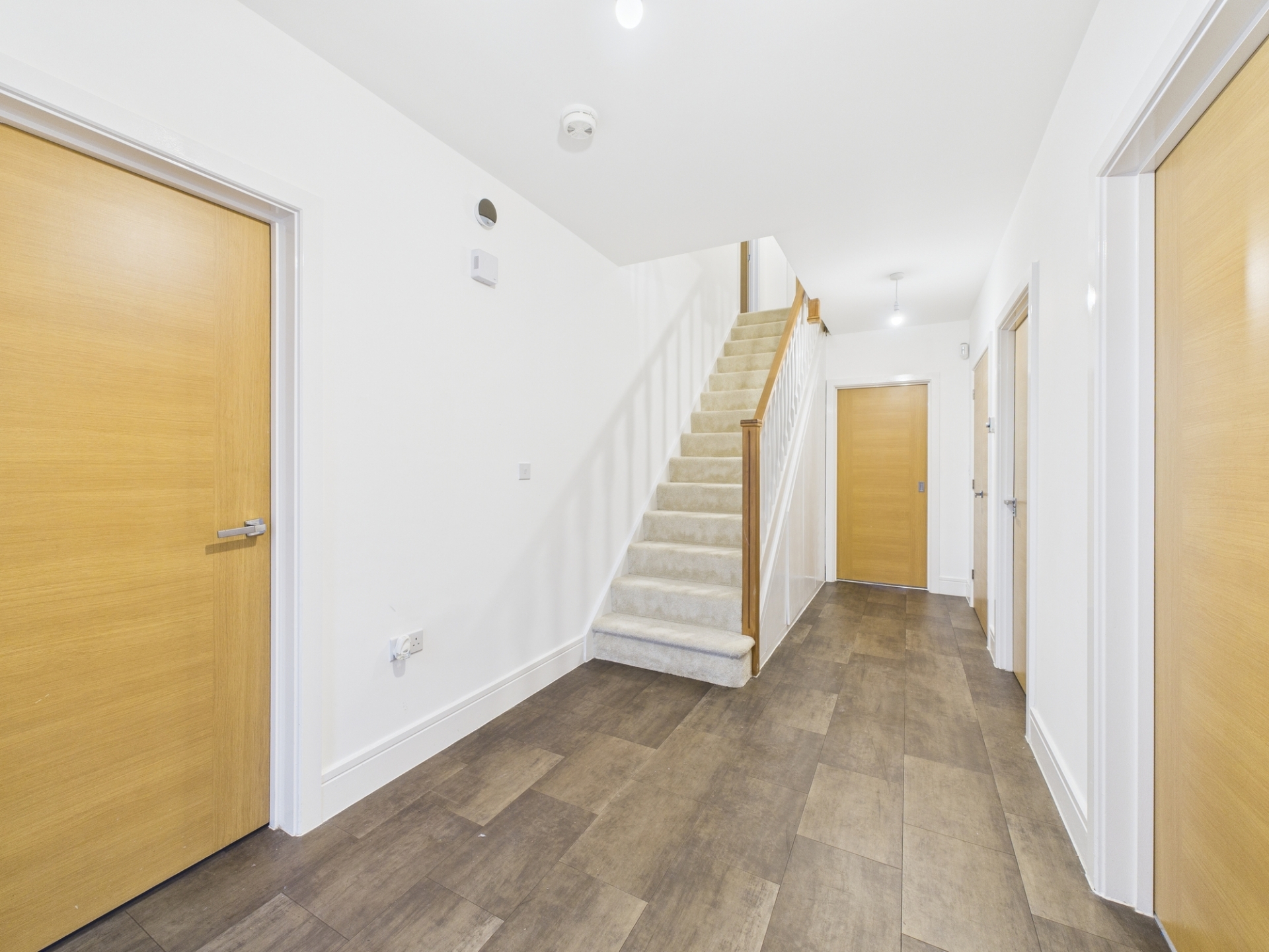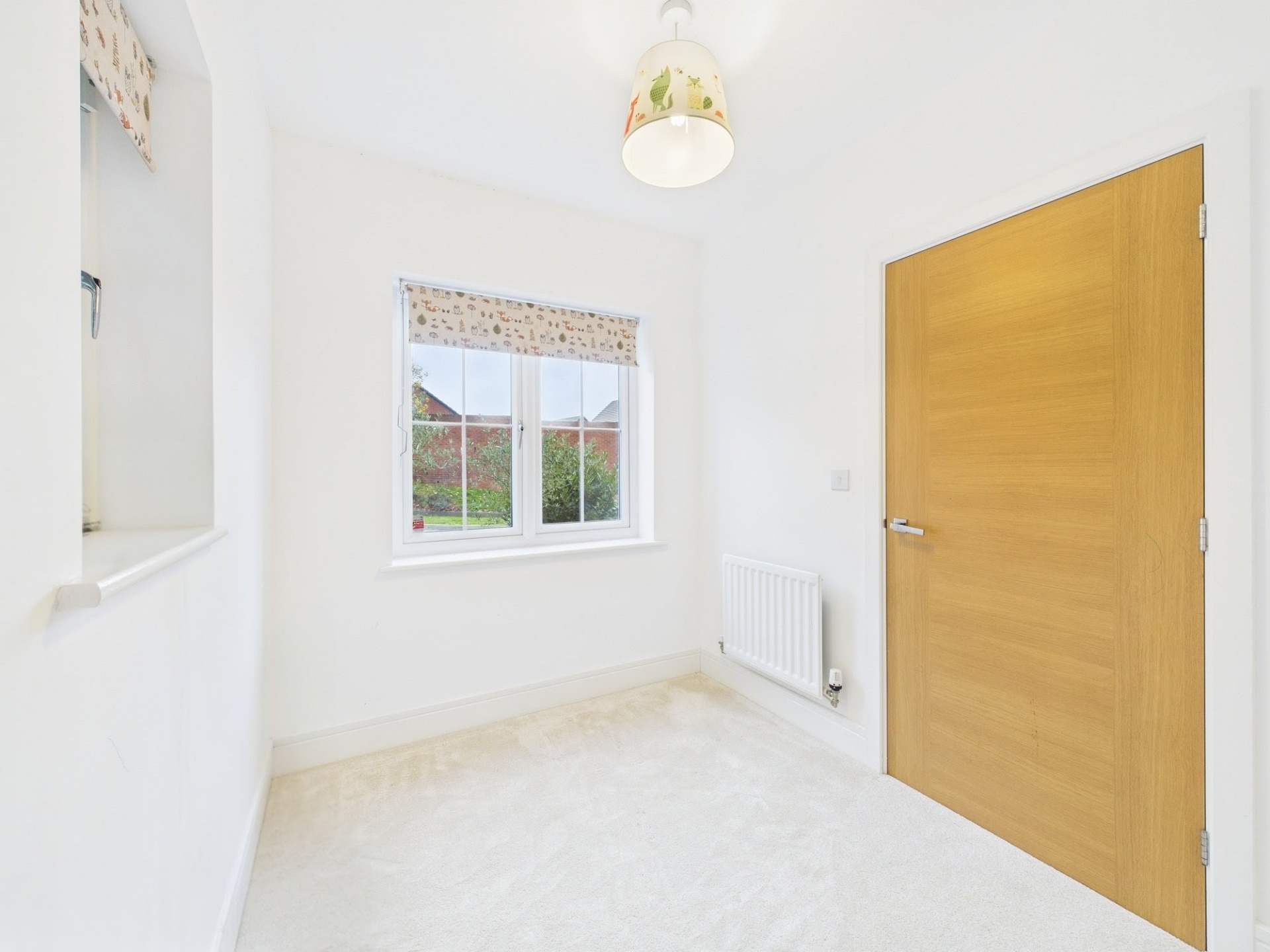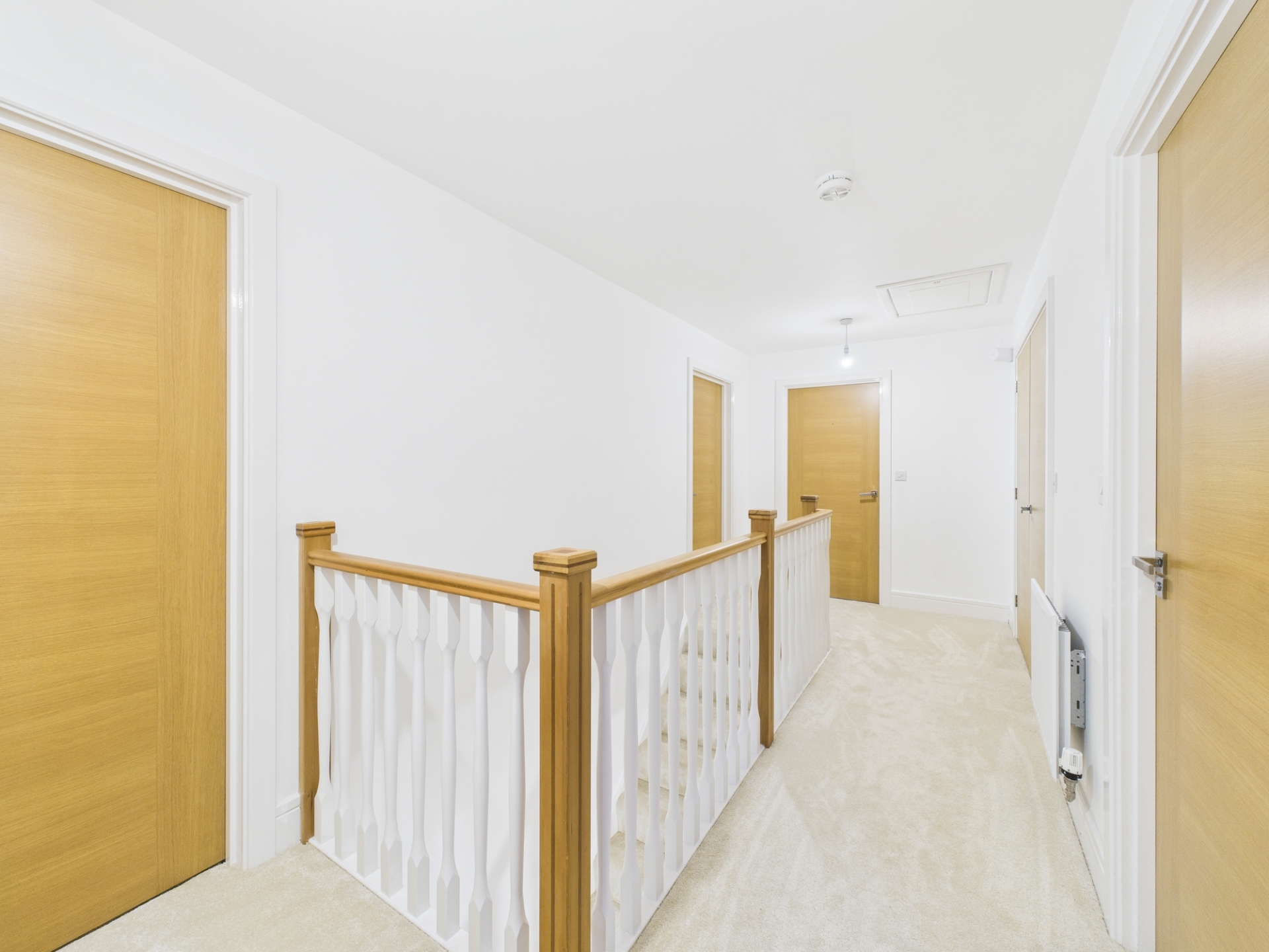 Upstairs, the principal bedroom benefits from a dressing area, fitted wardrobes, and a stylish en-suite. A second double bedroom also features its own en-suite shower room. The remaining bedrooms are well proportioned and served by a contemporary family bathroom.