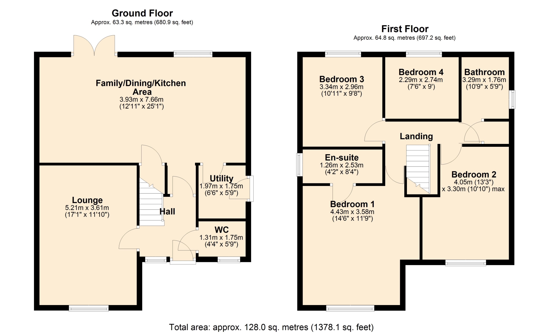 BEDROOM TWO 4.05m x 3.30m (13'3" x 10'10")