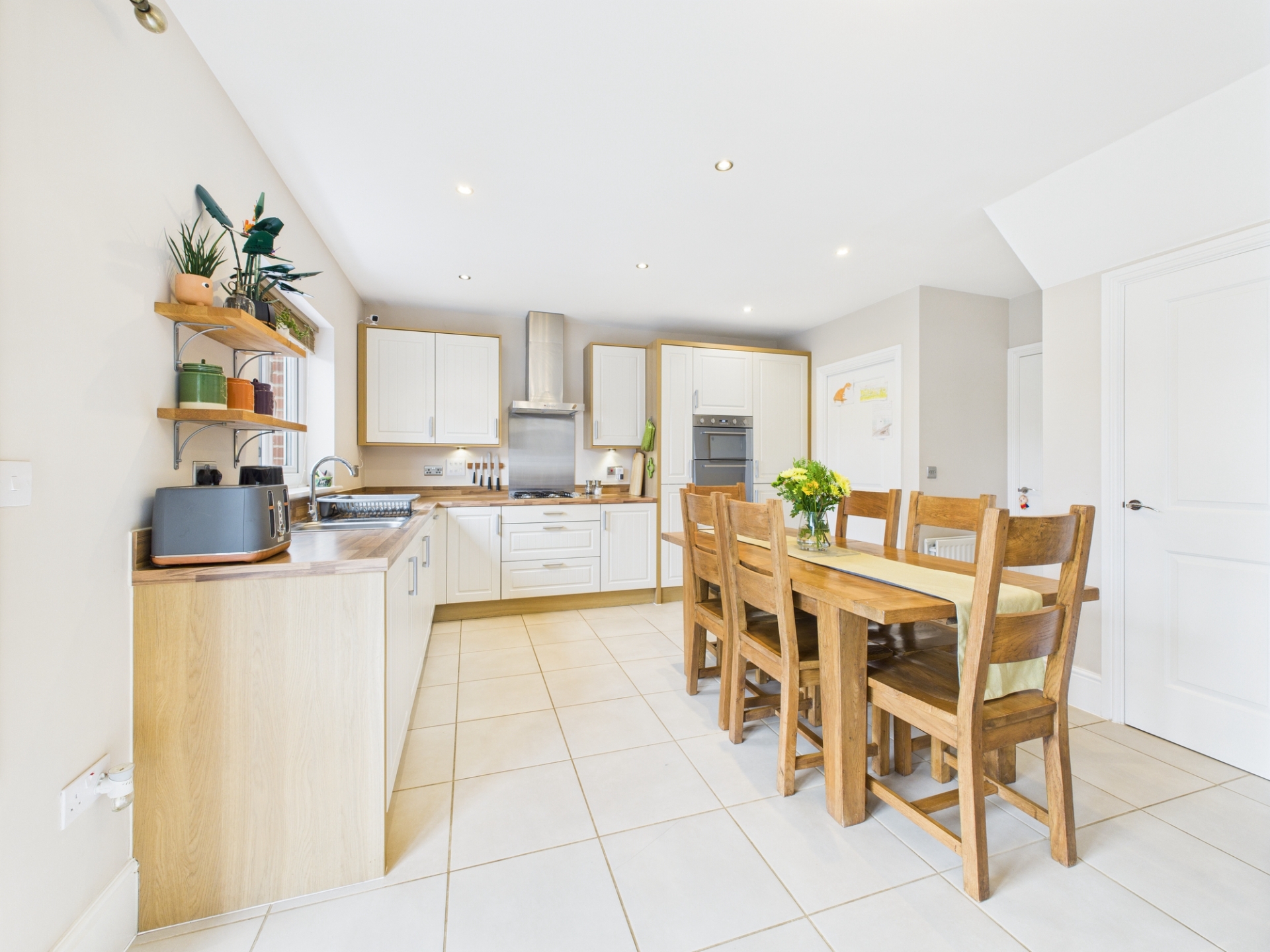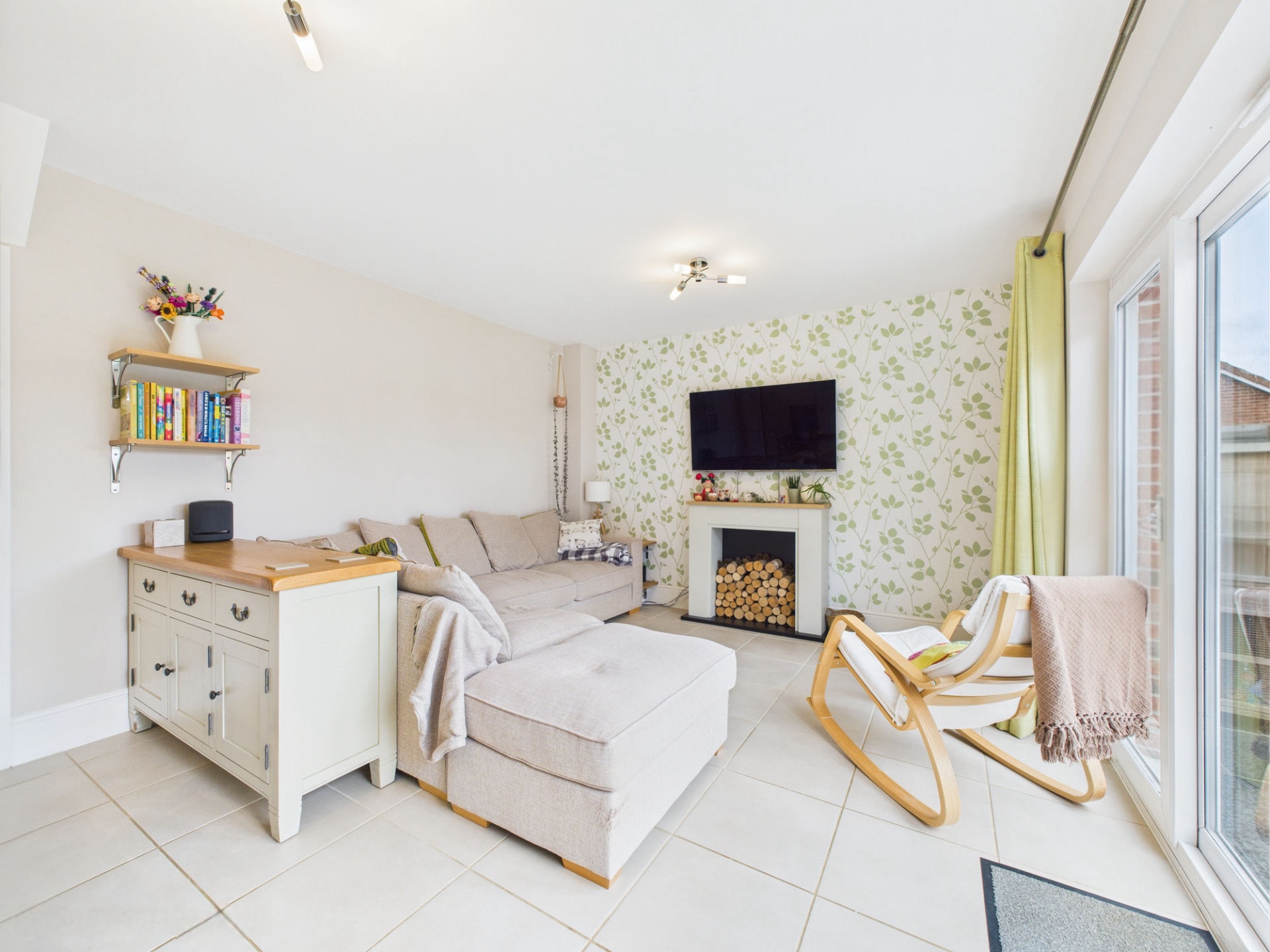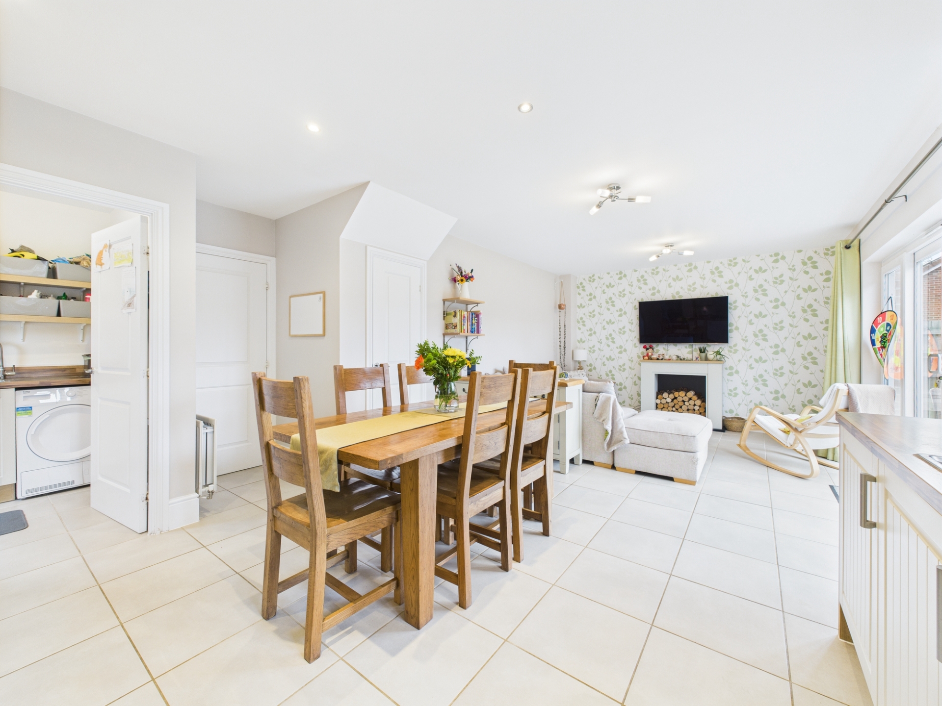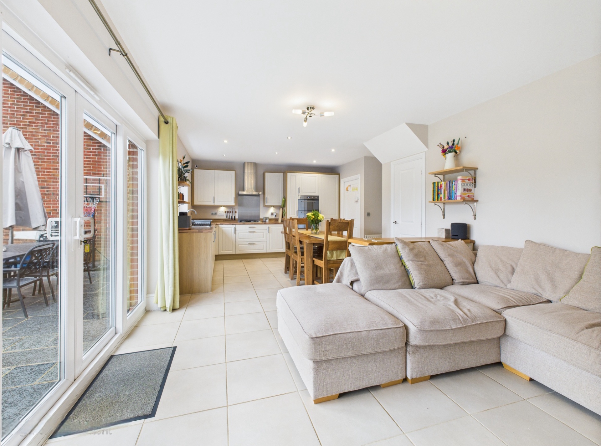 Double glazed picture windows including French door to patio area. A superb open plan family space with space for sofa's as well as dining table and chairs. Understairs cupboard. Tiled floor.