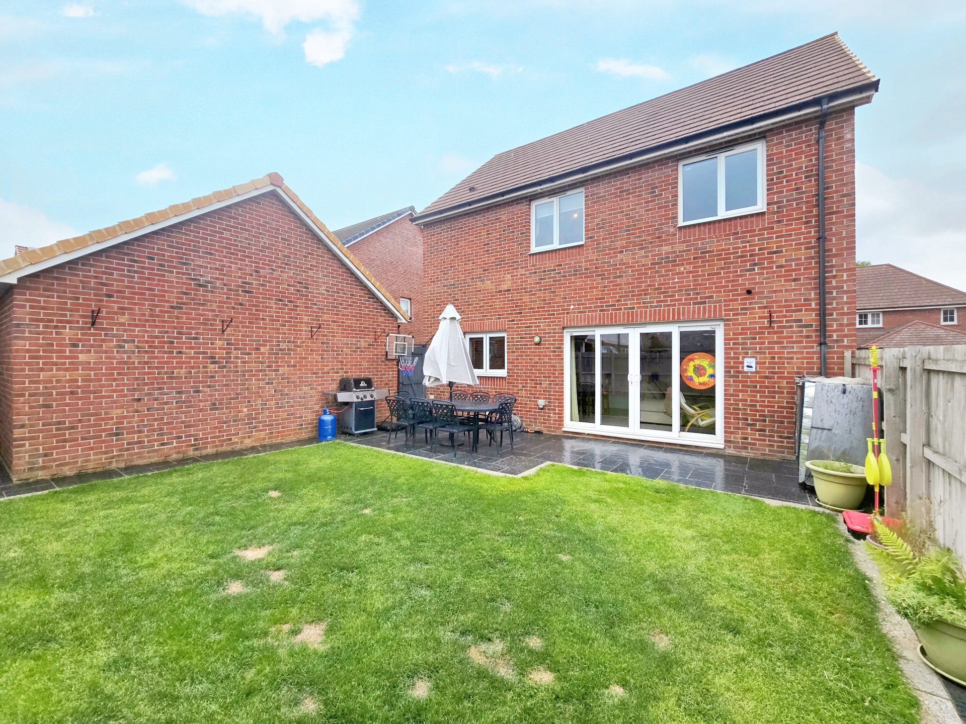 STUNNING FAMILY DETACHED HOUSE situated in a small, no through road in the highly regarded village of Hardingstone with excellent local schooling and other amenities nearby, and close to the southern Ring Road and M1 Motorway. The accommodation offers an entrance hall with cloakroom/WC, sitting room, fabulous family living/kitchen space with room for sofas and dining table and having kitchen units with built in appliances. To the first floor is four bedrooms, stylish en-suite and family bathroom. Outside the frontage is low maintenance, open plan with driveway extending to the side to the garage and a side gate to an enclosed rear garden. Highly Recommended. EPC Rating: C. Council Tax Band: E.