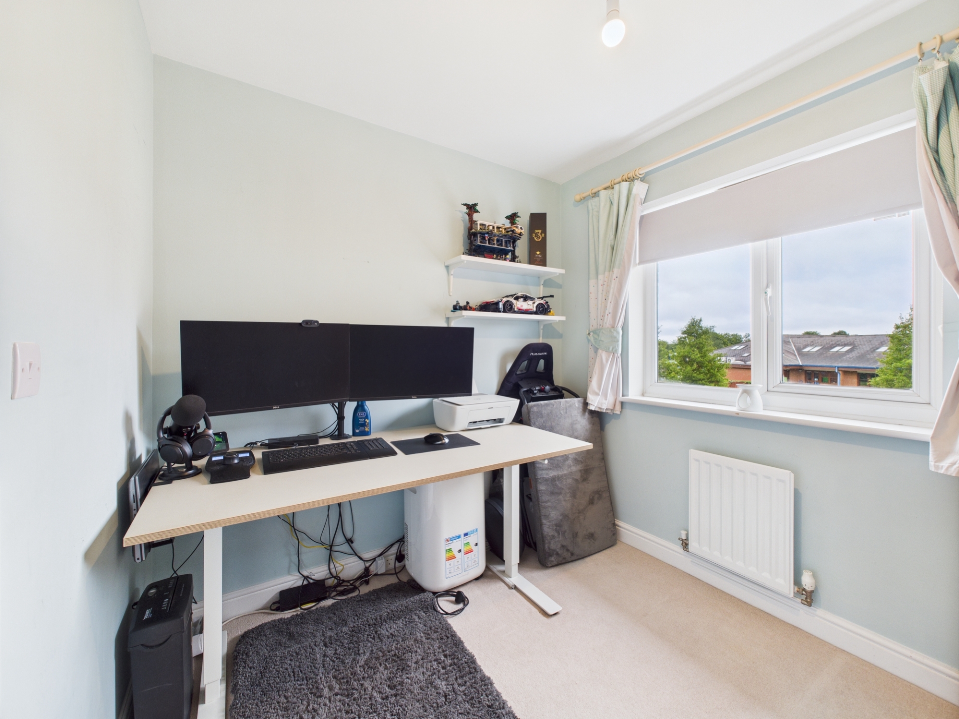 Driveway extending to side of house with EV car charger point. Side gate to rear garden