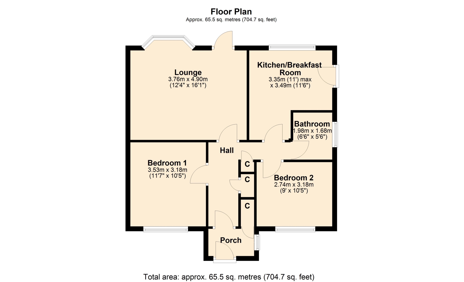 BEDROOM TWO 2.74m x 3.18m (9' x 10'5")