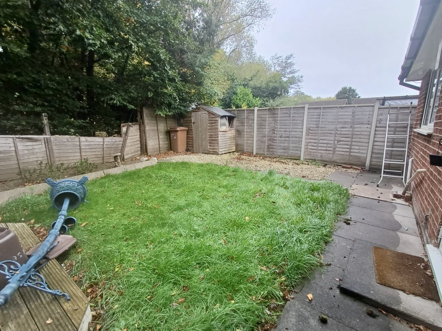 Fully enclosed with fencing with side gate access. Paved, decked and gravelled areas. Laid to lawn.