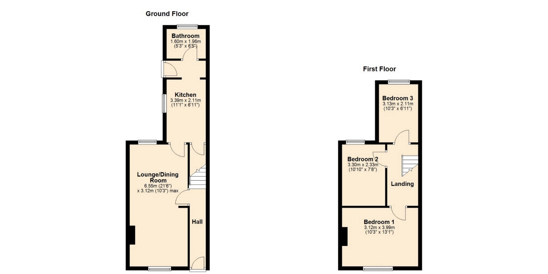 LOUNGE/DINING ROOM 6.55m x 3.12m (21’6 x 10’3) max