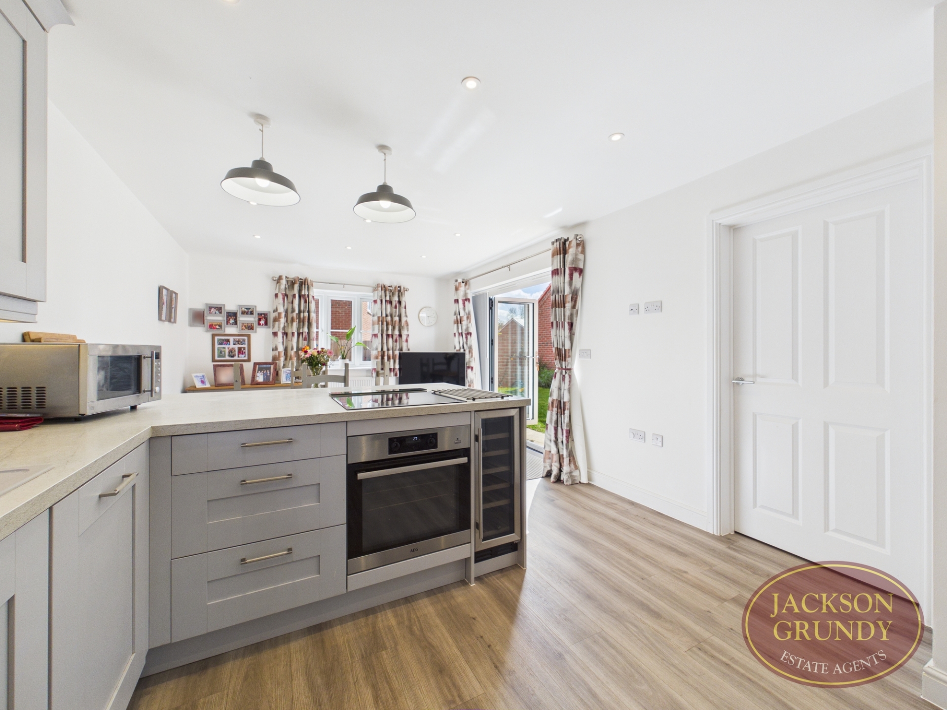 The kitchen/dining room runs along the property, with dual aspect windows and bi-fold doors bringing in plenty of light and creating an open space that works well for both daily living and hosting.