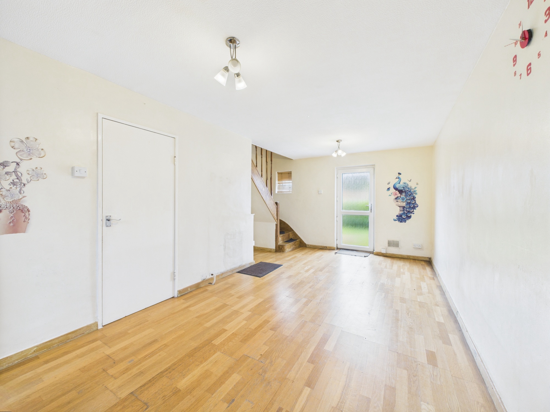 uPVC glazed entrance door. Cupboard housing meters and RCD consumer unit. Doors leading to:
