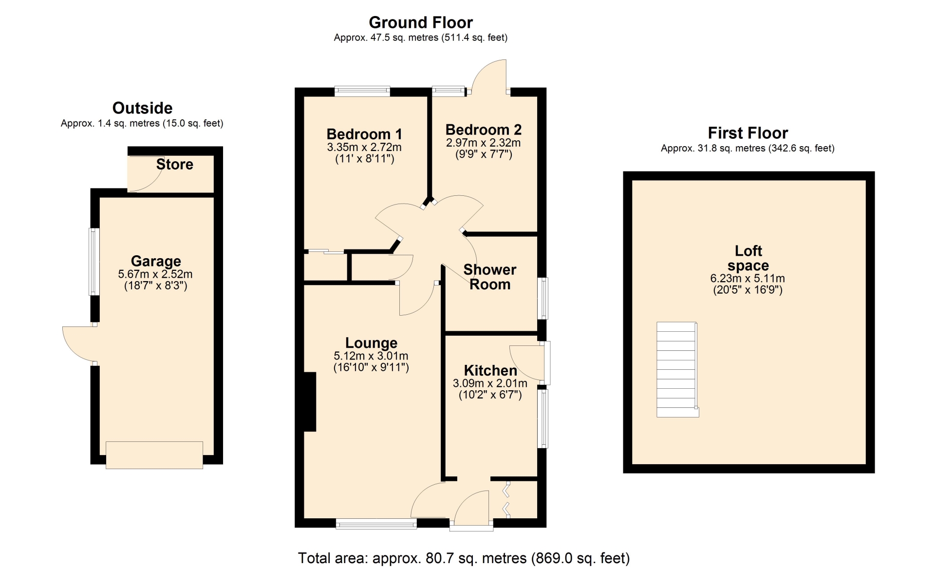 Inside, the accommodation includes a spacious lounge/dining room, a well-appointed kitchen, two bedrooms, and a practical wet room. The home also boasts a fully boarded loft space, ideal for storage or potential further use (subject to any necessary consents). Outside, the property enjoys a good-sized, low maintenance rear garden, perfect for relaxing or entertaining. Additional benefits include off-road parking and a single garage, providing ample space for vehicles and storage.