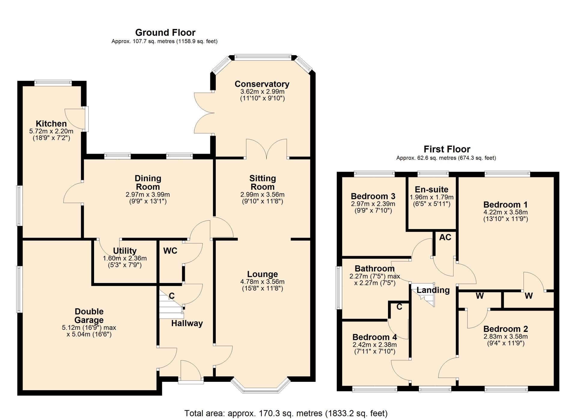 BEDROOM ONE 4.22m x 3.58m (13'10" x 11'9")