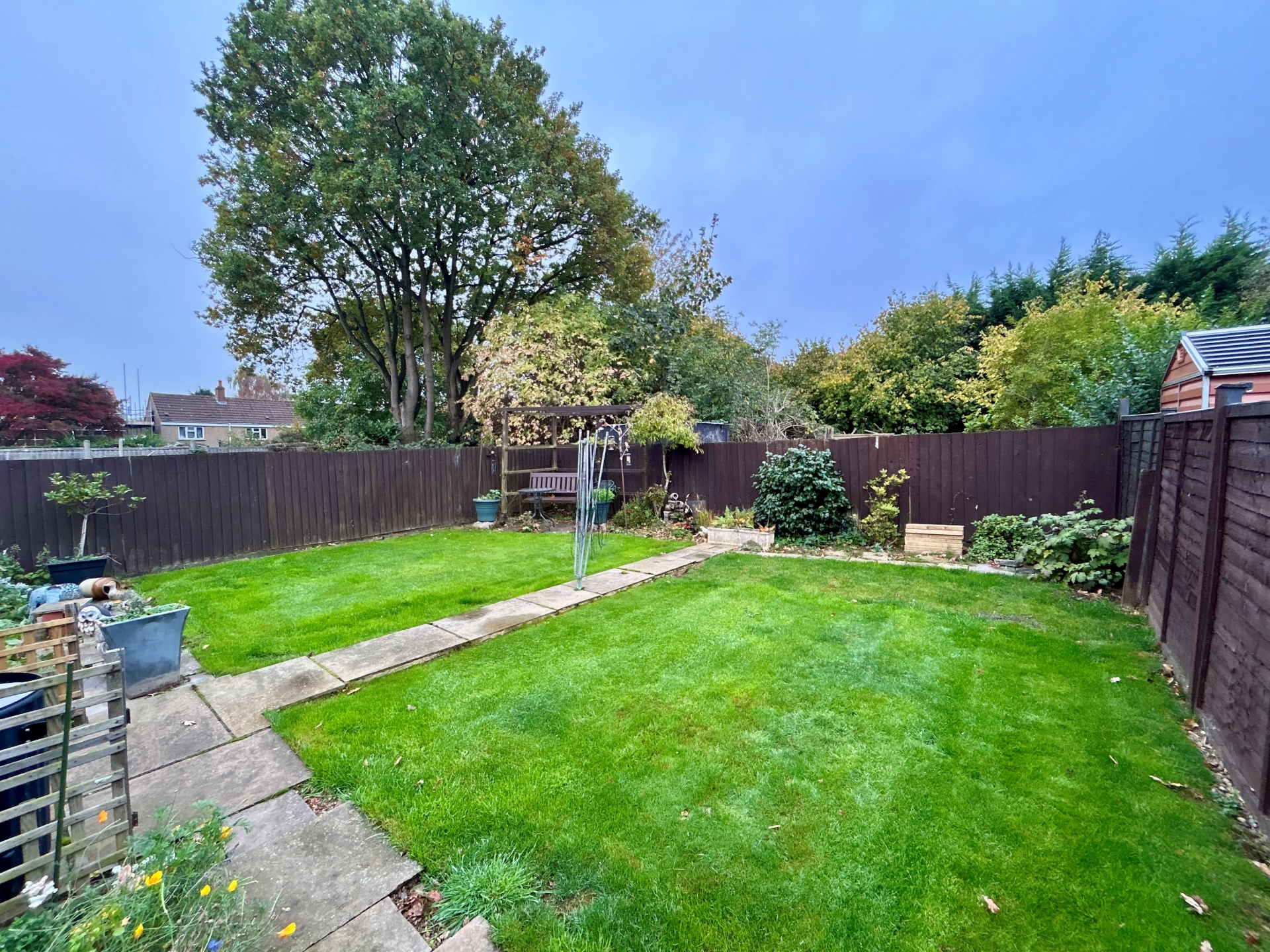 Mainly laid to lawn. A range of shrub and bush borders. Patio area stretching across the width of property.