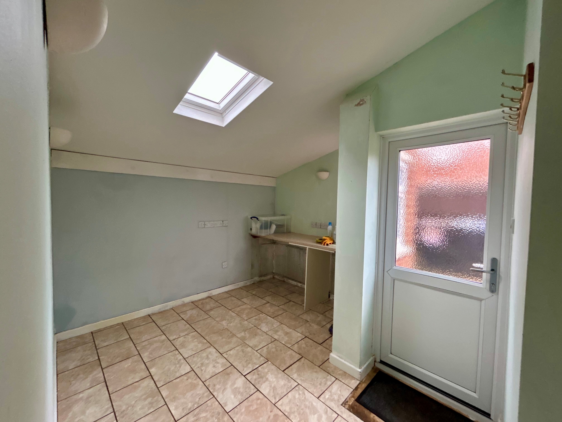 uPVC double glazed single door to side elevation. uPVC double glazed skylight. Space for washing machine. Tiled flooring.