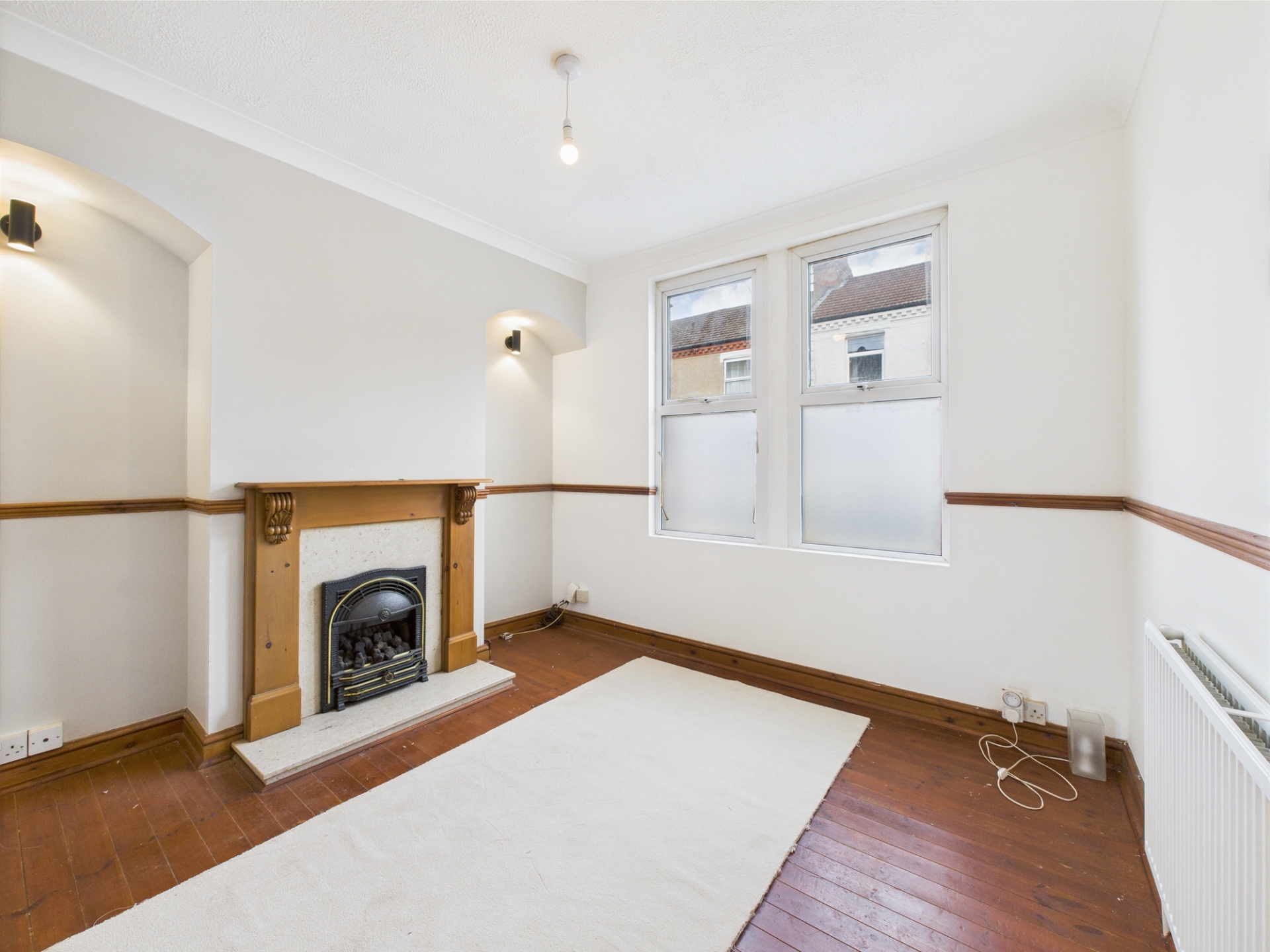 UPVC double glazed window to front elevation. Feature fireplace. Built in storage cupboard. Radiator. Television point.
