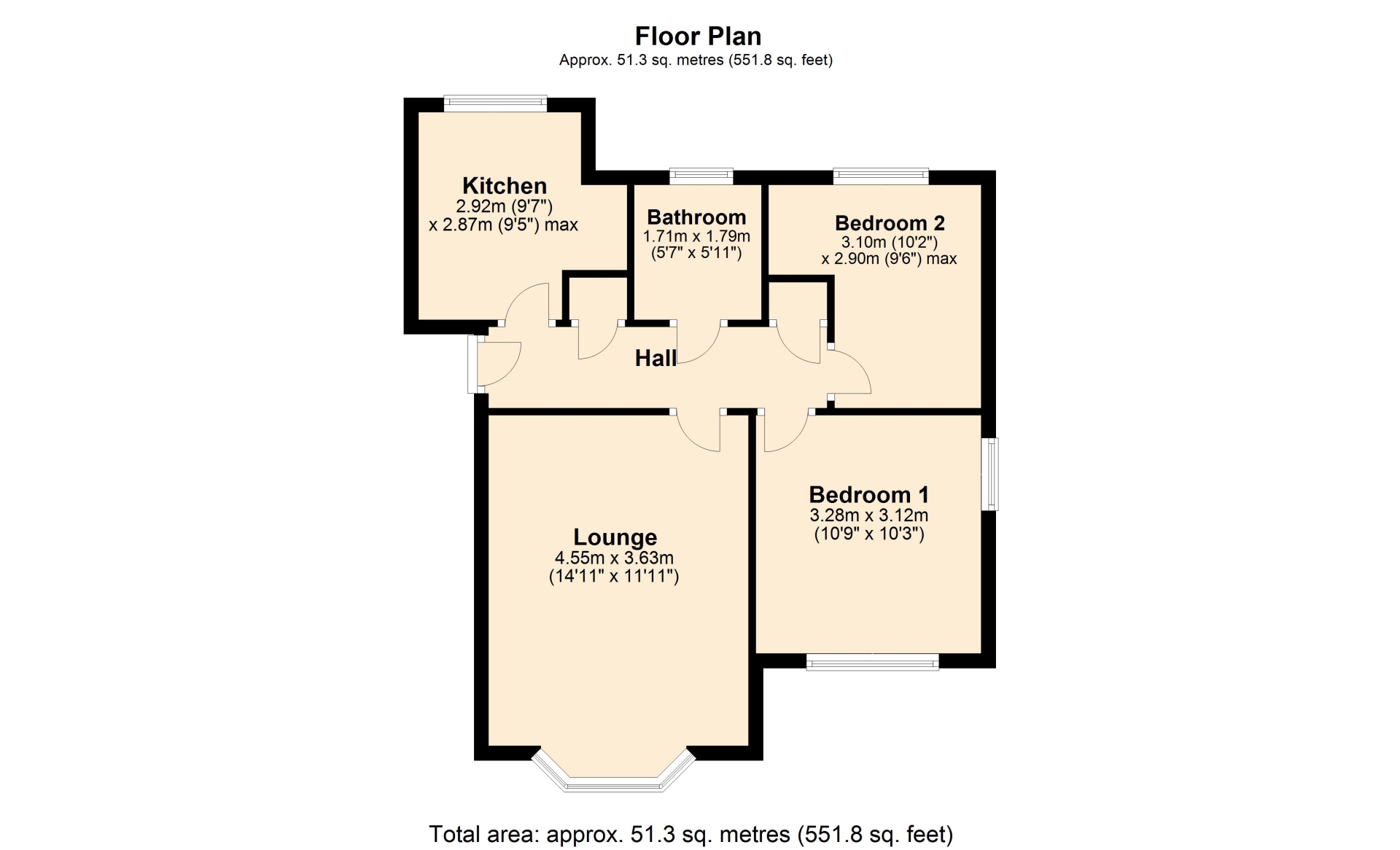 BEDROOM TWO 3.10m x 2.90m (10'2" x 9'6")