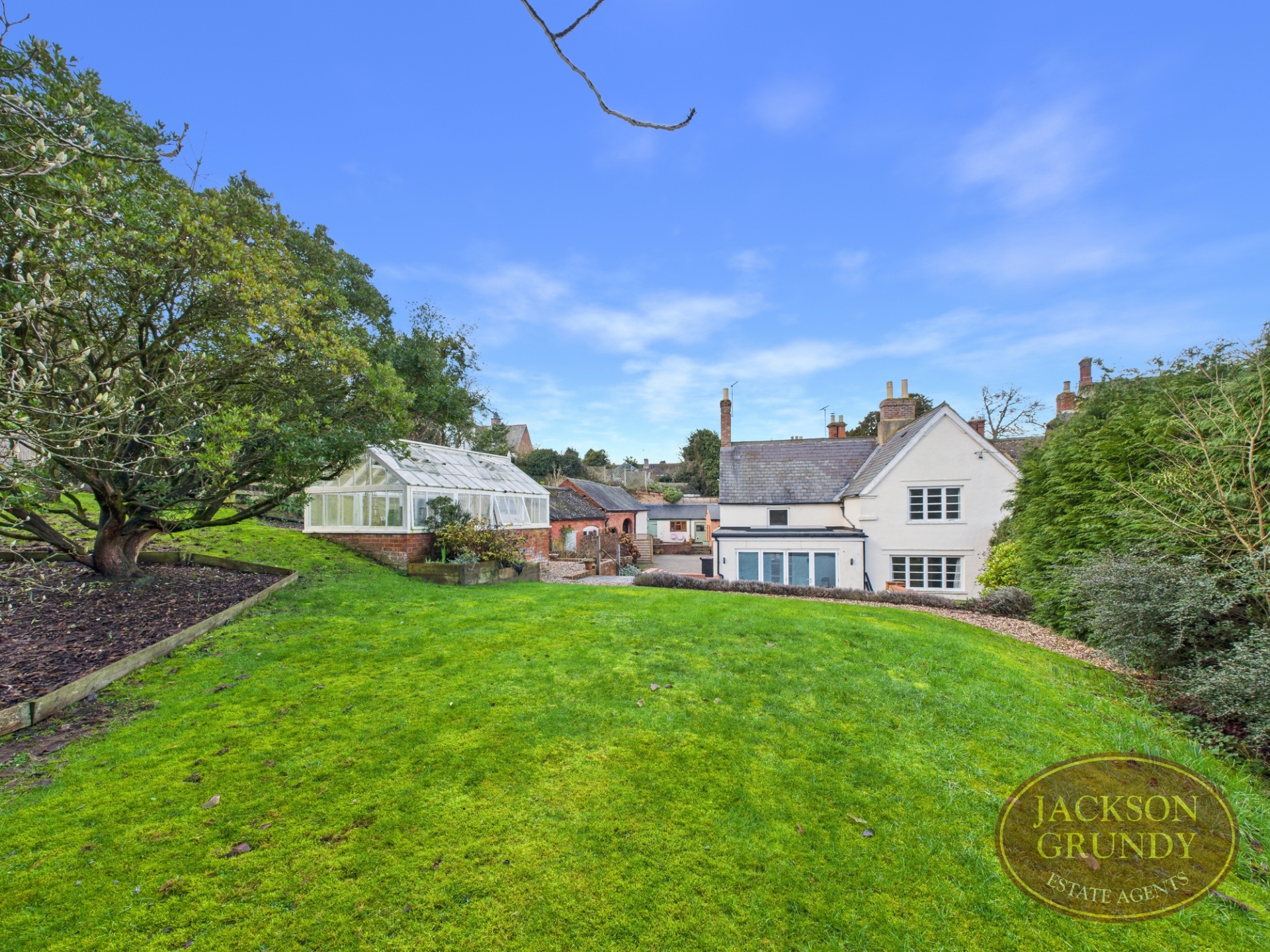 Outside, there is a block paved driveway, an open 12ft x 9ft garage and brick built barns including the 15ft x 14ft old forge plus a timber greenhouse. The large lawn is bordered and interspersed with established trees.