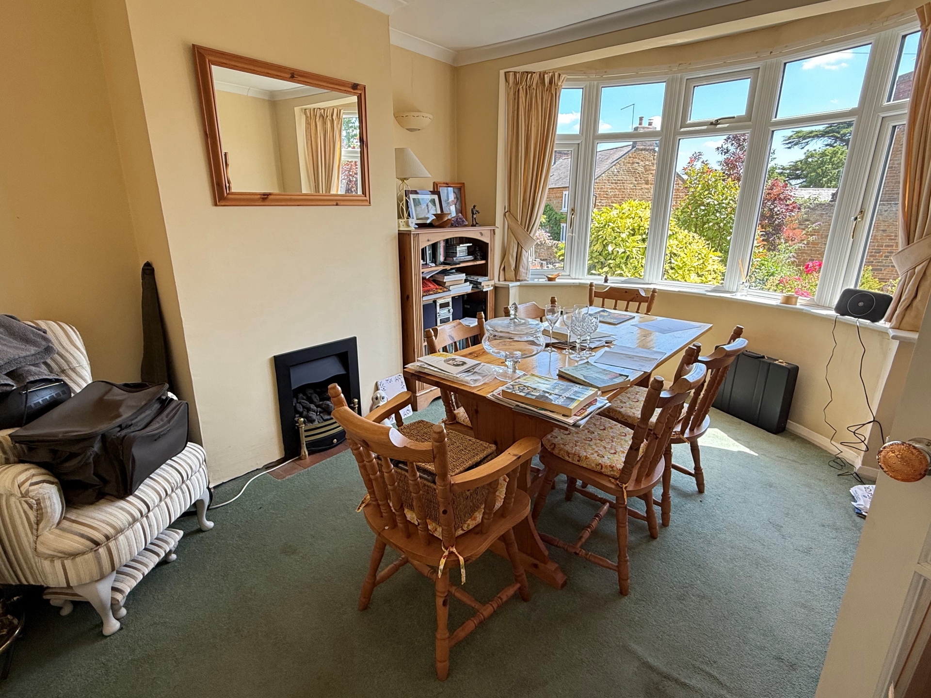 uPVC double glazed bay window to front elevation. Radiator. Gas fireplace. Coving.