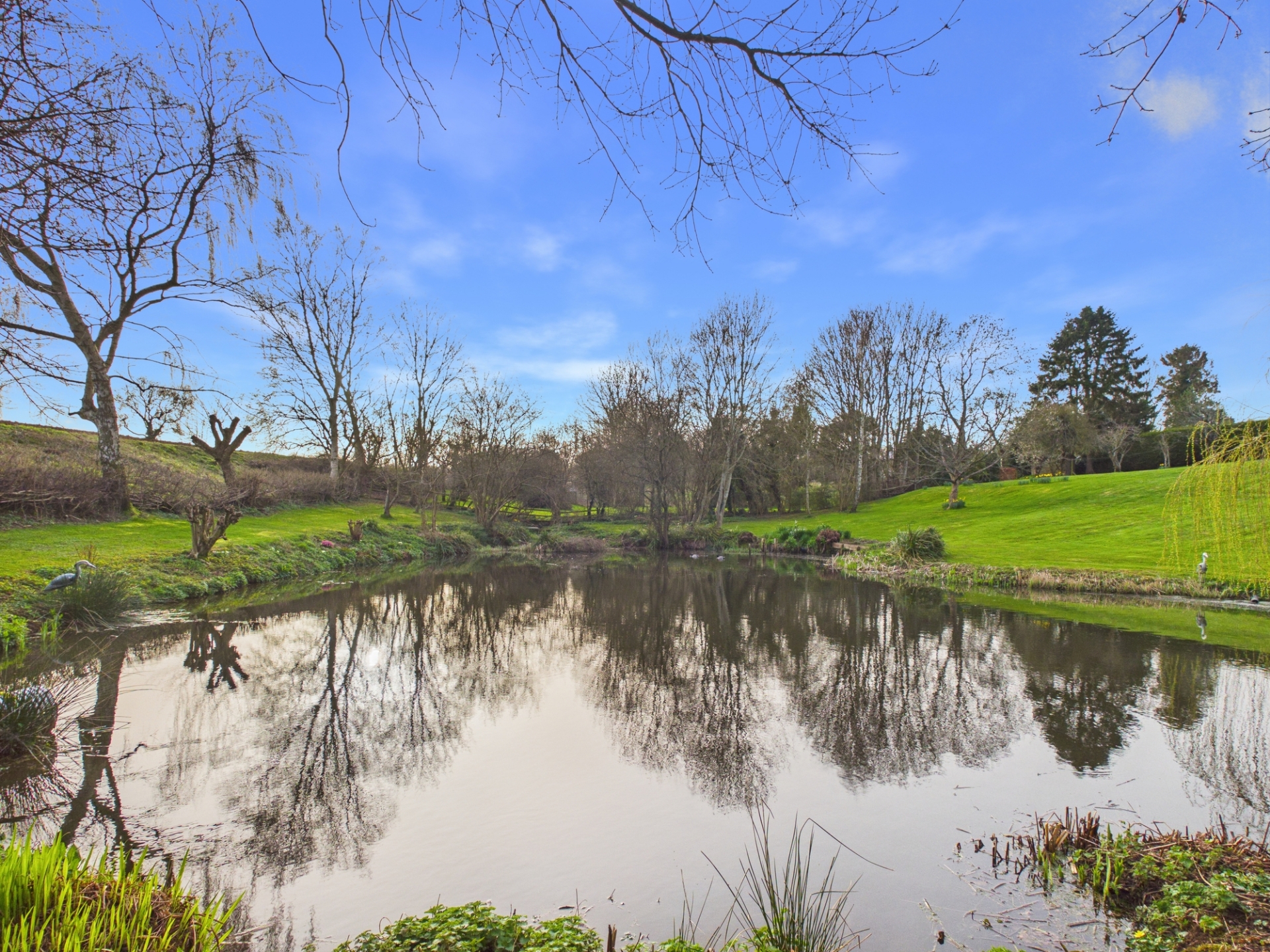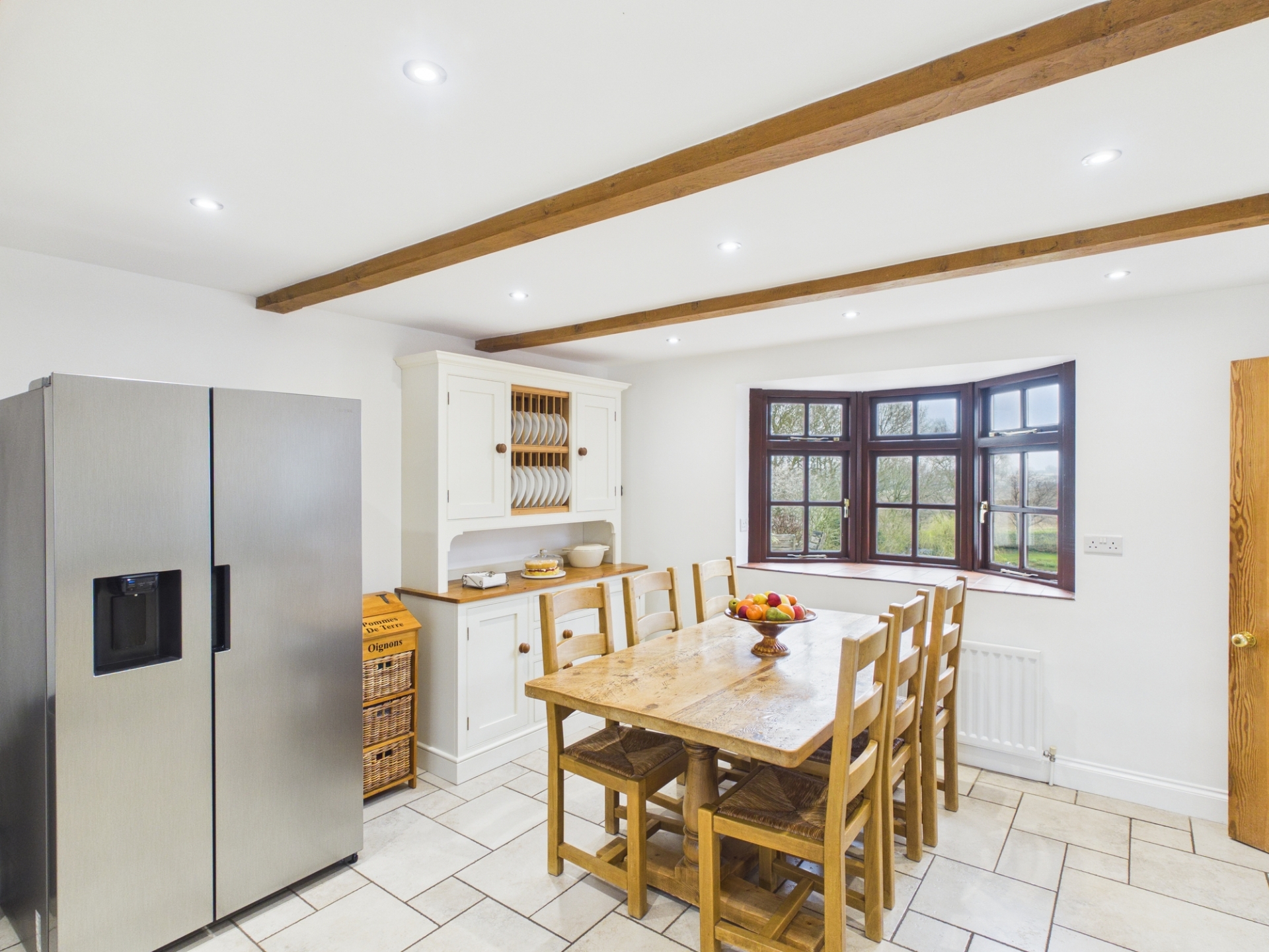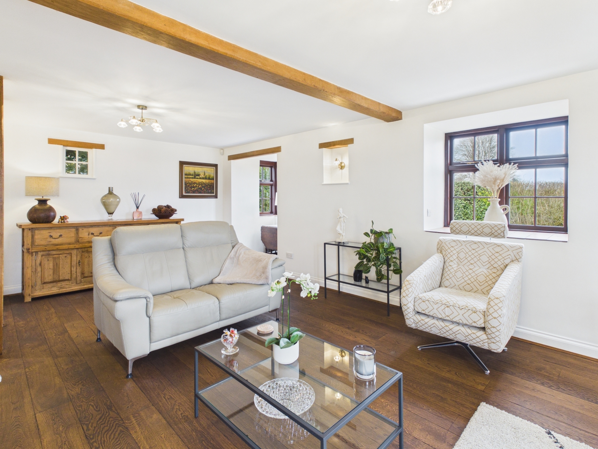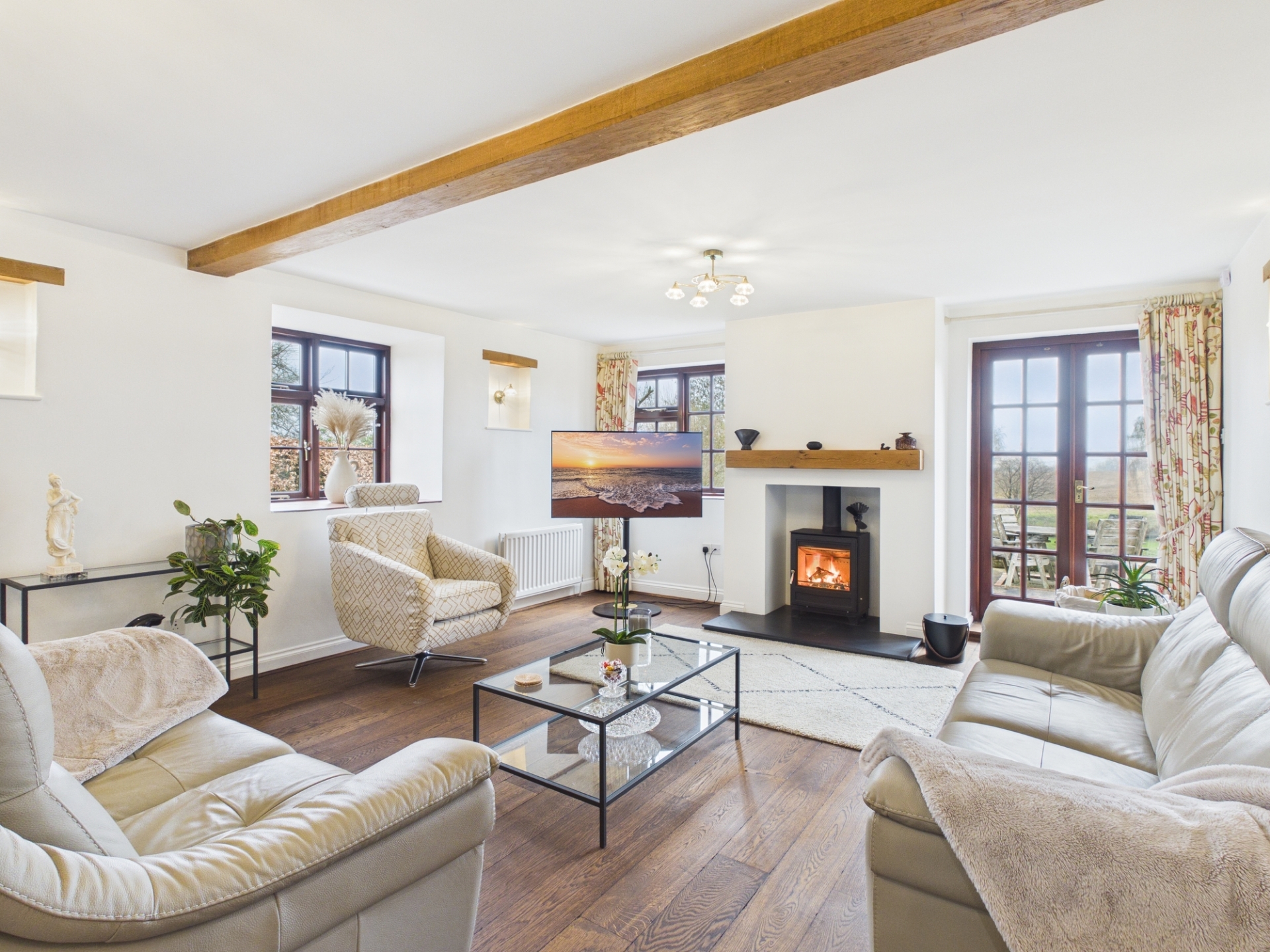 To the rear, a paved terrace overlooks the garden, pond and countryside beyond, with further seating areas positioned to enjoy the sun from dawn until dusk. The lawn is bordered and interspersed with established trees, and to the side of the property there is a vegetable garden and greenhouse.