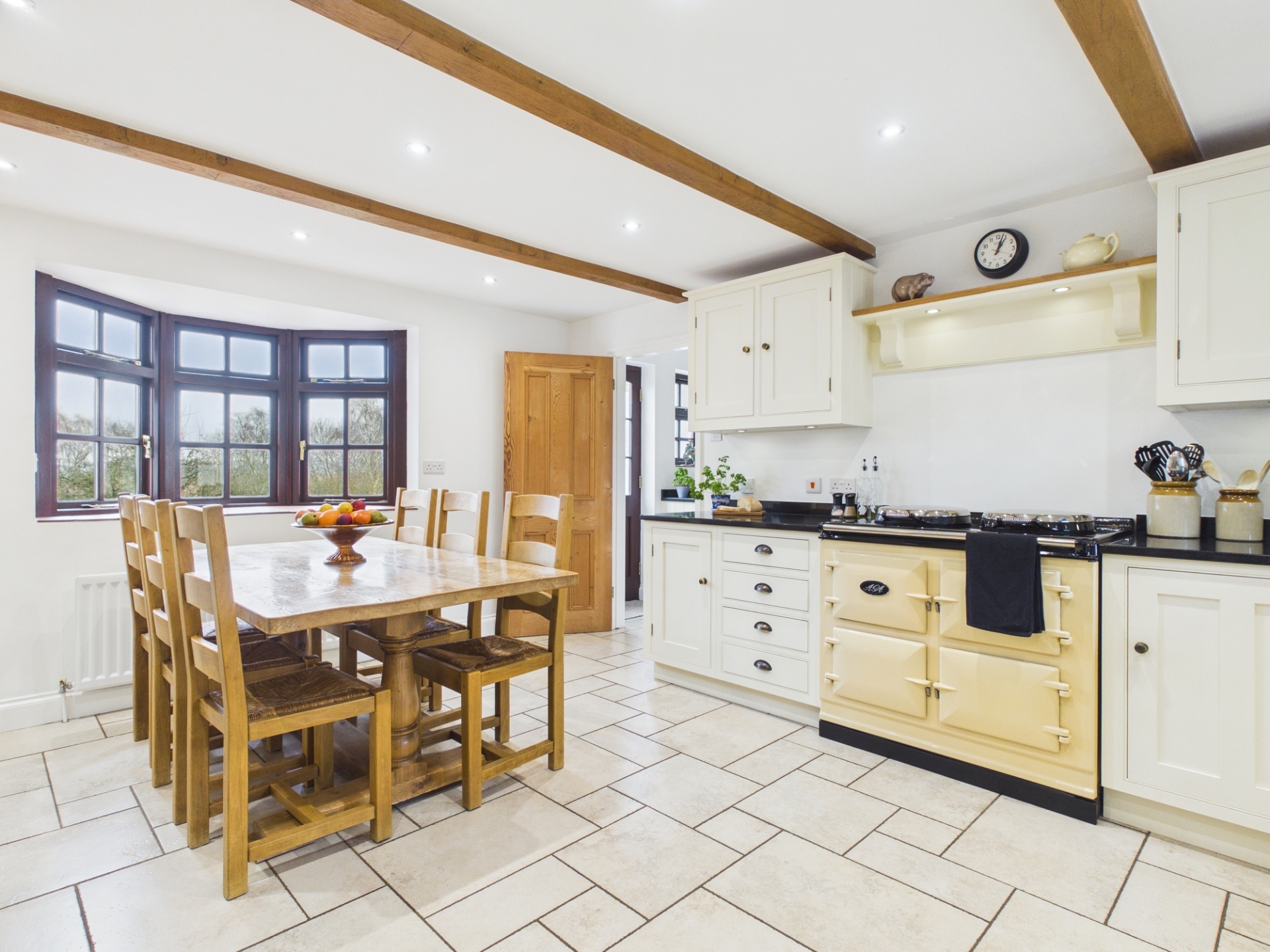 The kitchen/dining room is fitted with an AGA, granite worktops and a Belfast sink, with an integrated dishwasher and space for a large fridge/freezer. A utility room, fitted to the same standard, leads to a cloakroom, both benefiting from direct access to the garden.