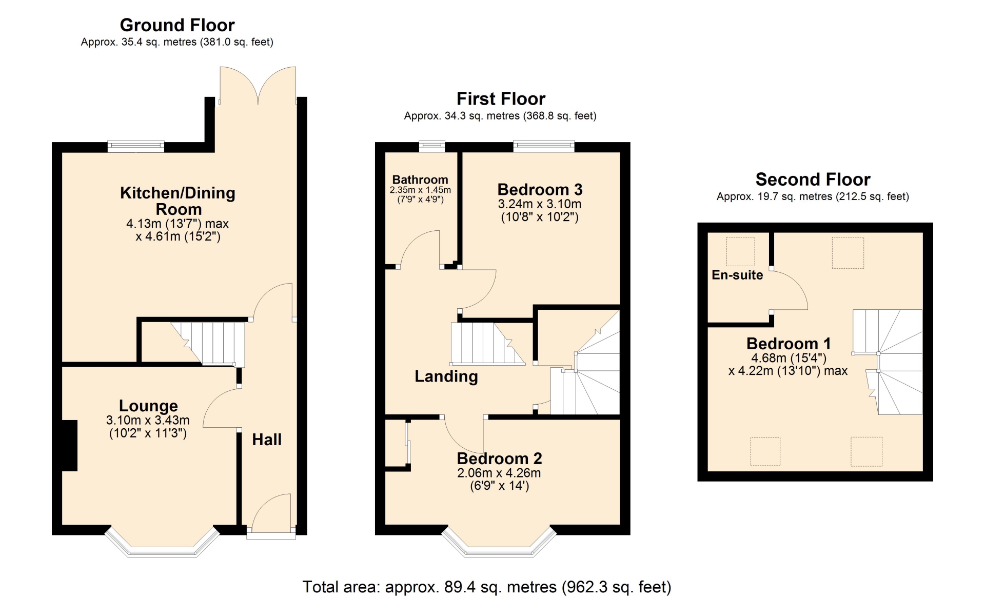 Offered to the market with no onward chain, this beautifully renovated three bedroom, two bathroom mid terraced home. The ground floor features a welcoming entrance hall, a lounge with bay window, and a open plan kitchen/dining room to the rear – perfect for modern family living and entertaining. On the first floor, you’ll find two double bedrooms and a three piece family bathroom, while the top floor hosts the master bedroom complete with an en-suite shower room. Outside, the property boasts a large rear garden and a garage, with potential to create off road parking to the front (subject to dropped kerb approval). Viewing is highly recommended to fully appreciate the quality and space this home offers. EPC Rating: E. Council Tax Band: B