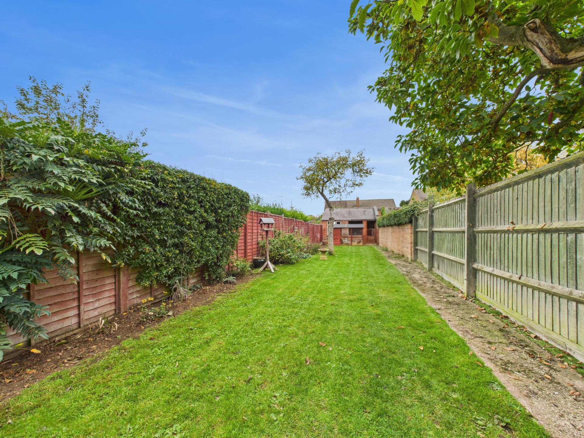85ft rear garden with lawn, paved patio area and established borders.
