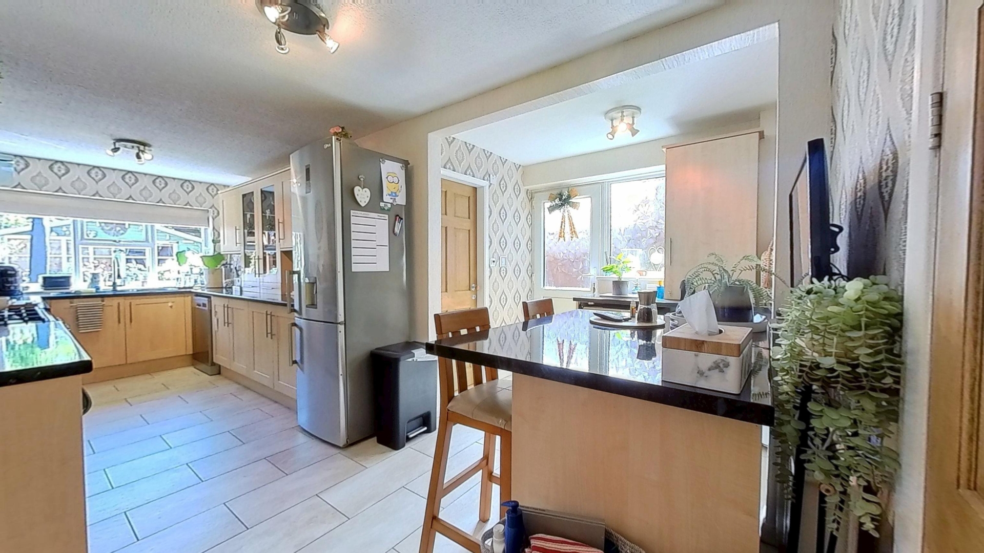 uPVC double glazed window to side elevation. Wall and base units. Roll top work surfaces. Space for white goods.