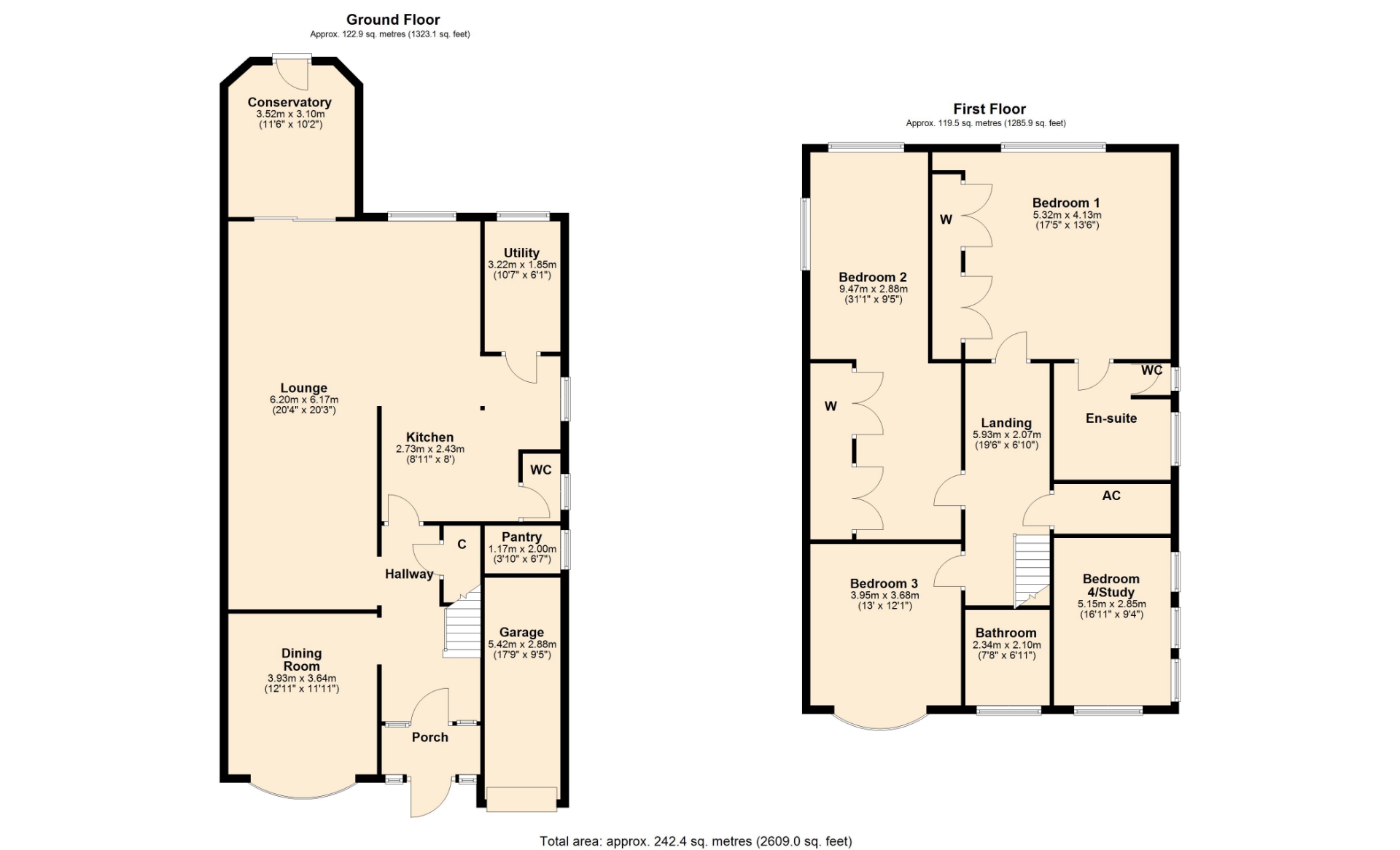 BEDROOM ONE 5.32m x 4.13m (17'5" x 13'7")