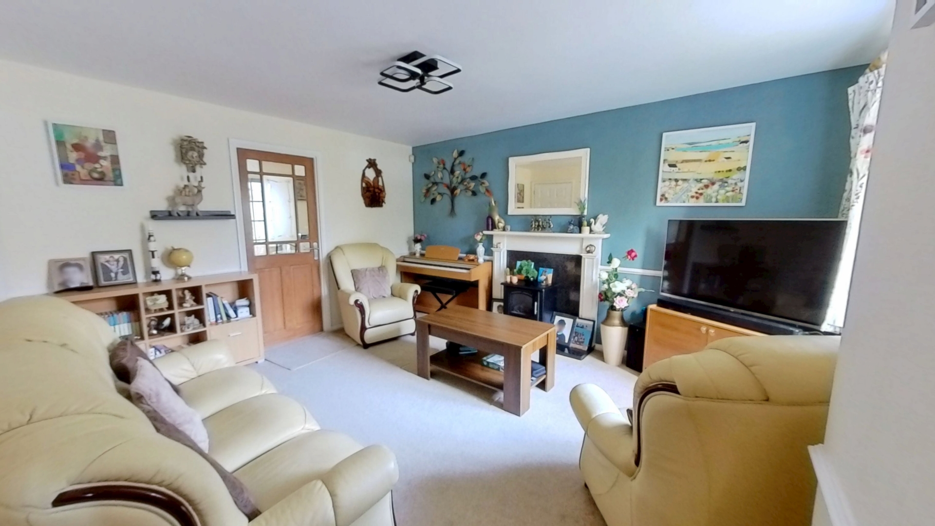 uPVC double glazed window ot front elevation. Radiator. Feature fireplace with granite hearth and surround with electric log burner. Dado rail. Large understairs storage cupboard. Doors to: