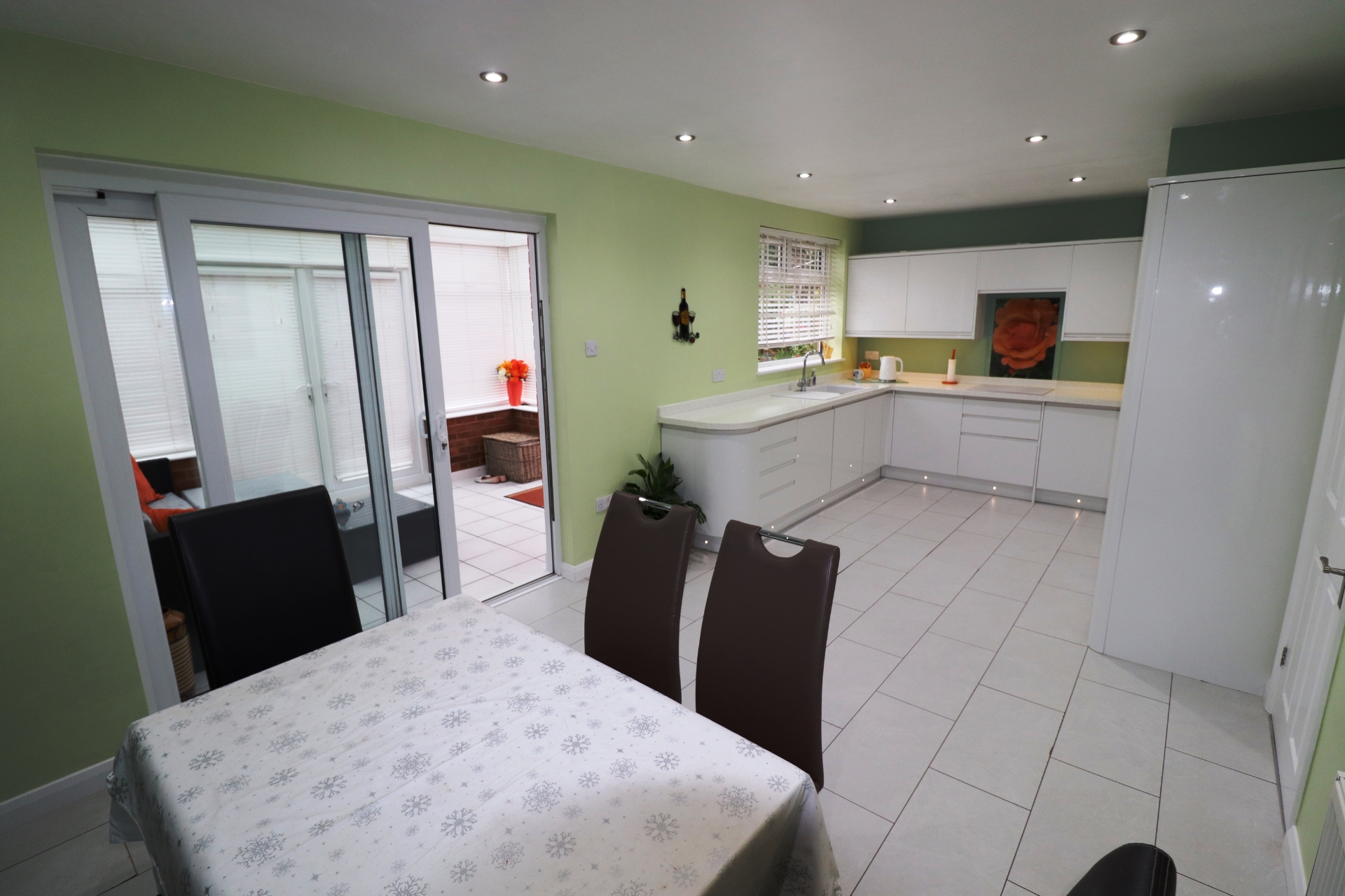 A beautifully presented four bedroom home located in the highly sought after area of Duston, 49 Knightscliffe Way offers stylish living spaces and a well designed layout ideal for modern family life. The ground floor features a bright entrance hall leading to a generous lounge with a large front window, creating a warm and inviting atmosphere. There is a further double bedroom downstairs. At the rear, the impressive open plan kitchen/dining room has been tastefully finished, boasting ample storage, integrated appliances, and direct access to the garden.