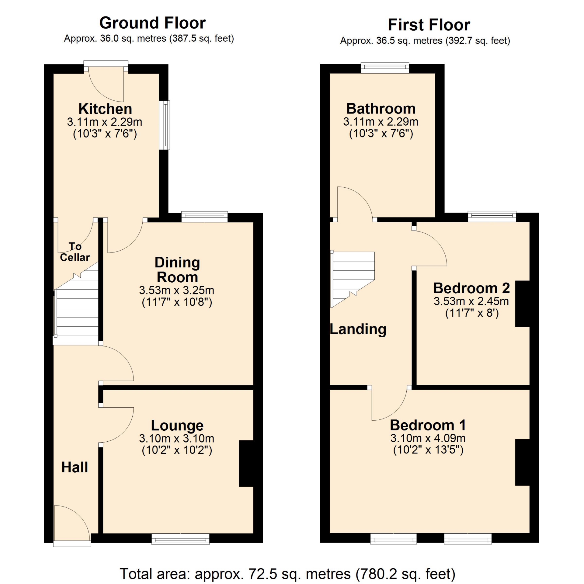 BEDROOM TWO 3.53m x 2.45m (11'7" x 8'0")