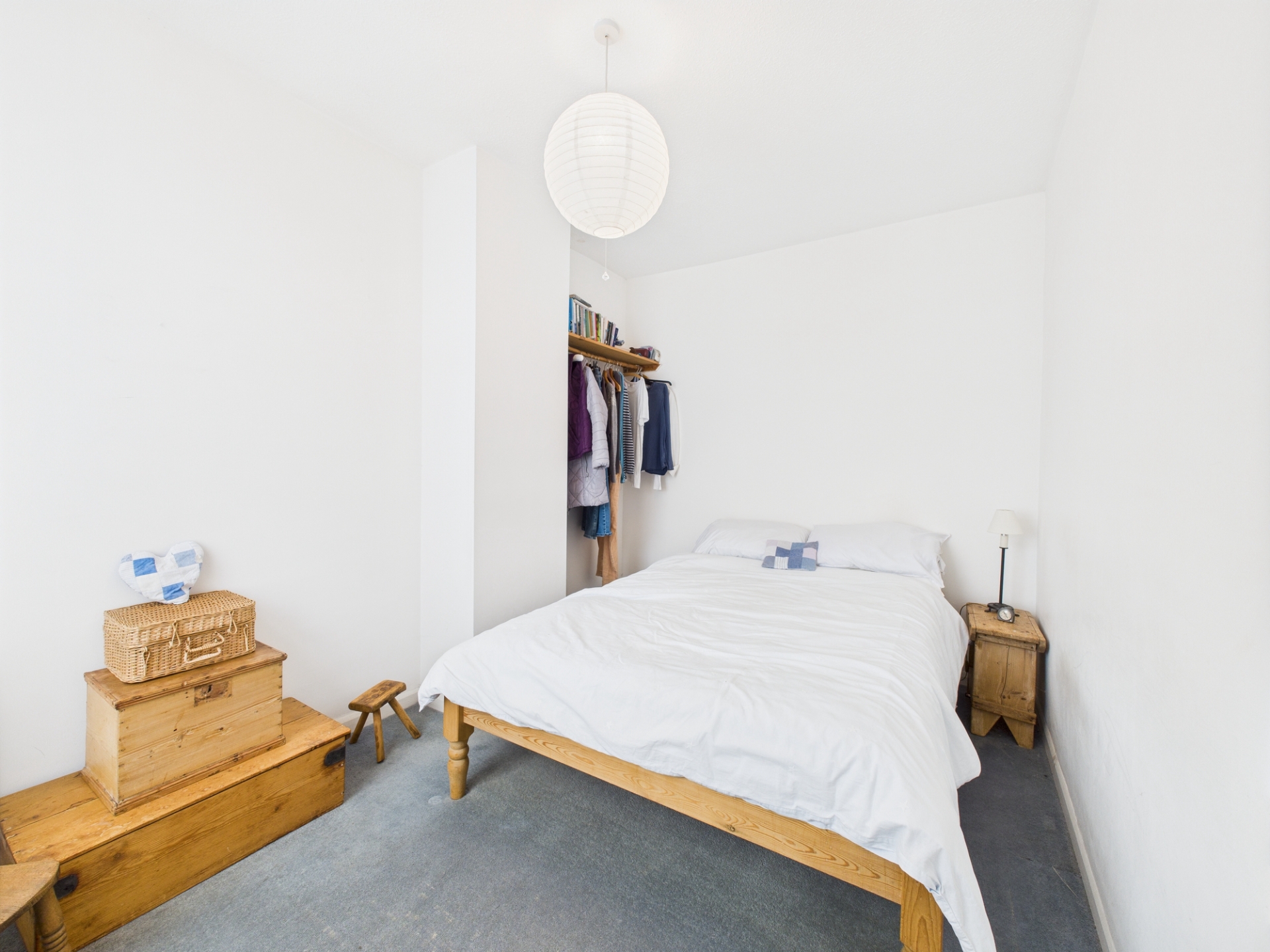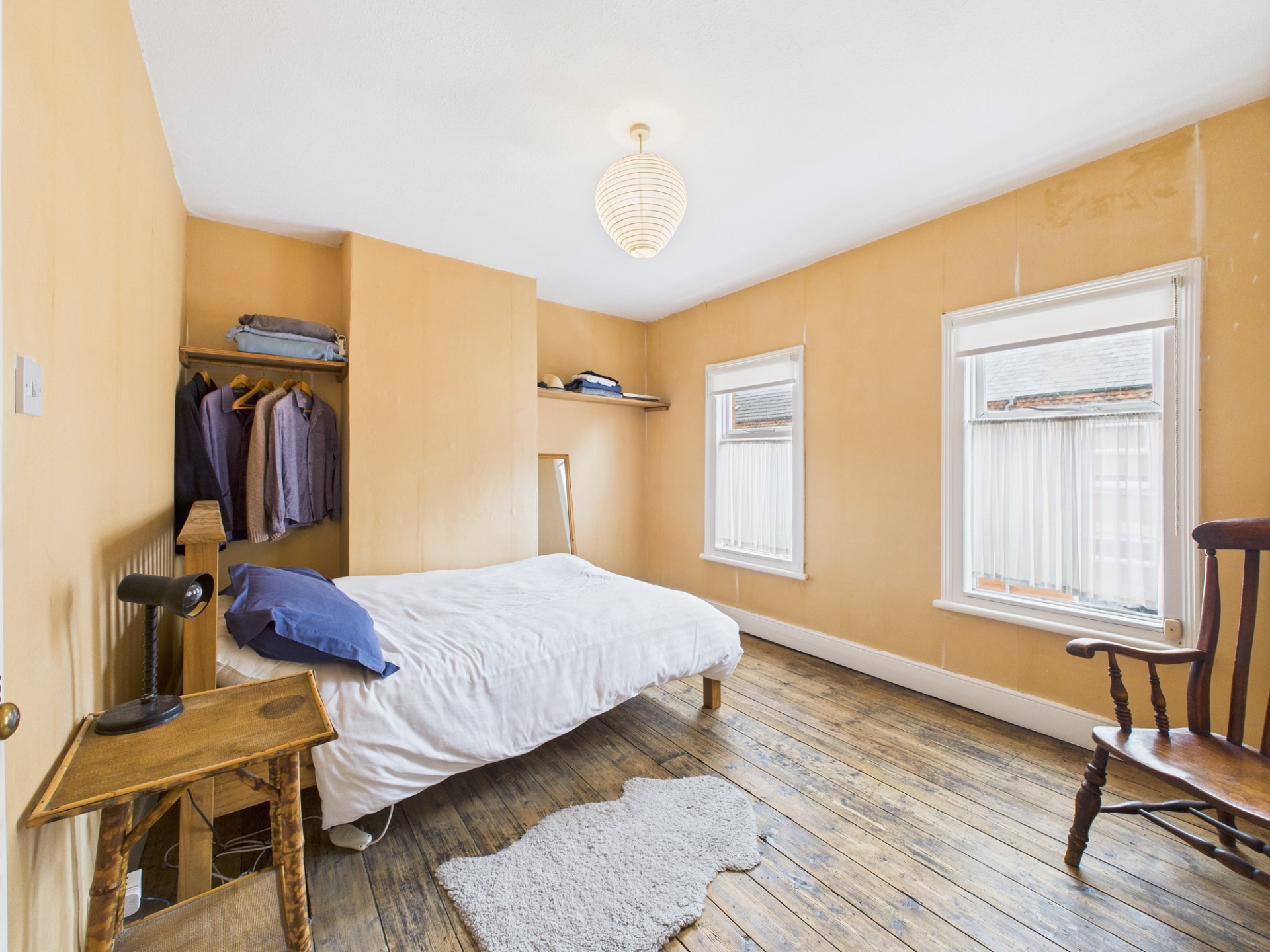 Wooden framed single glazed window to front elevation. Electric fire. Original floorboards.