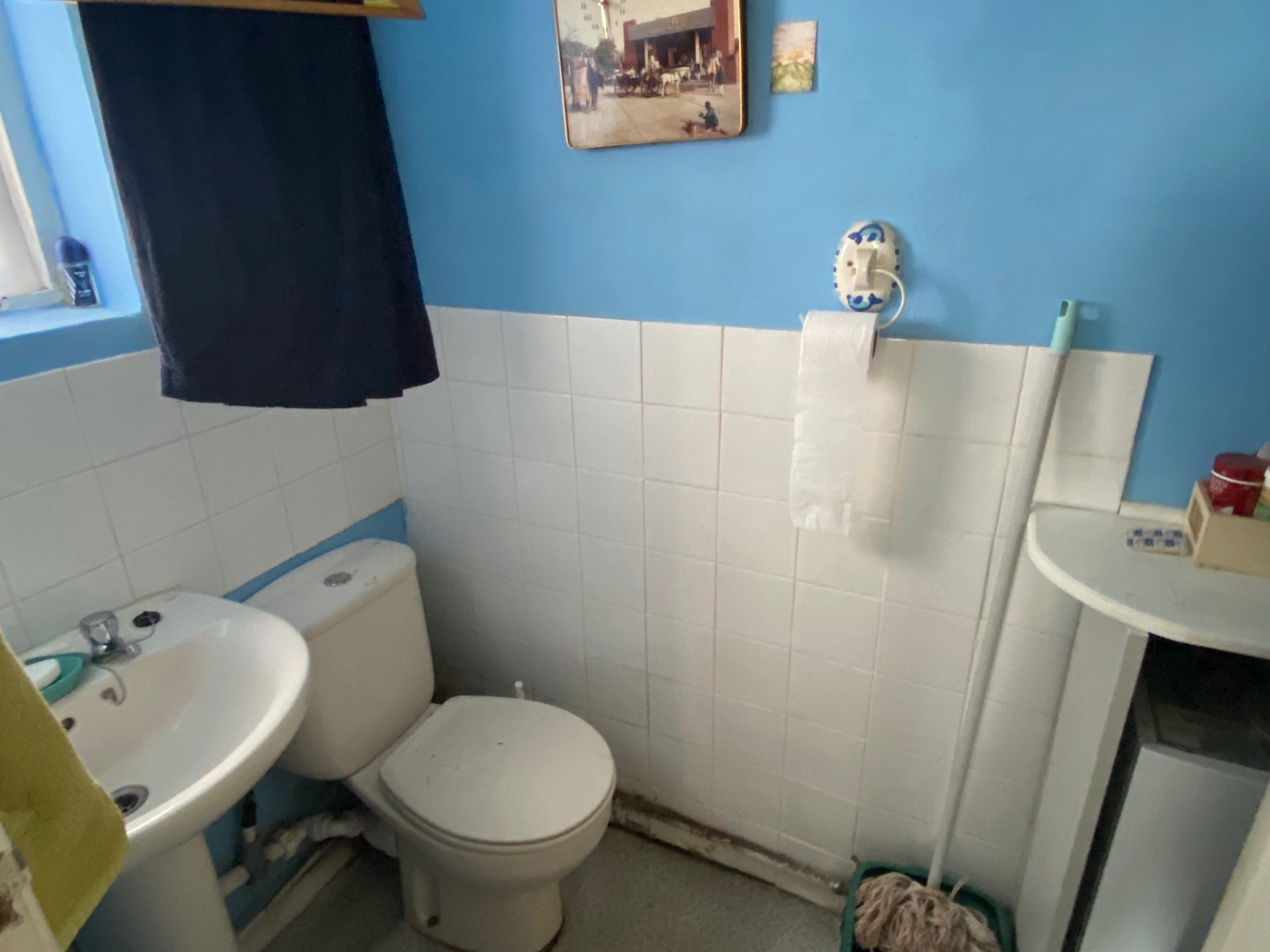 Obscure window to side elevation. Low level WC and wash hand basin. Gas fired boiler.