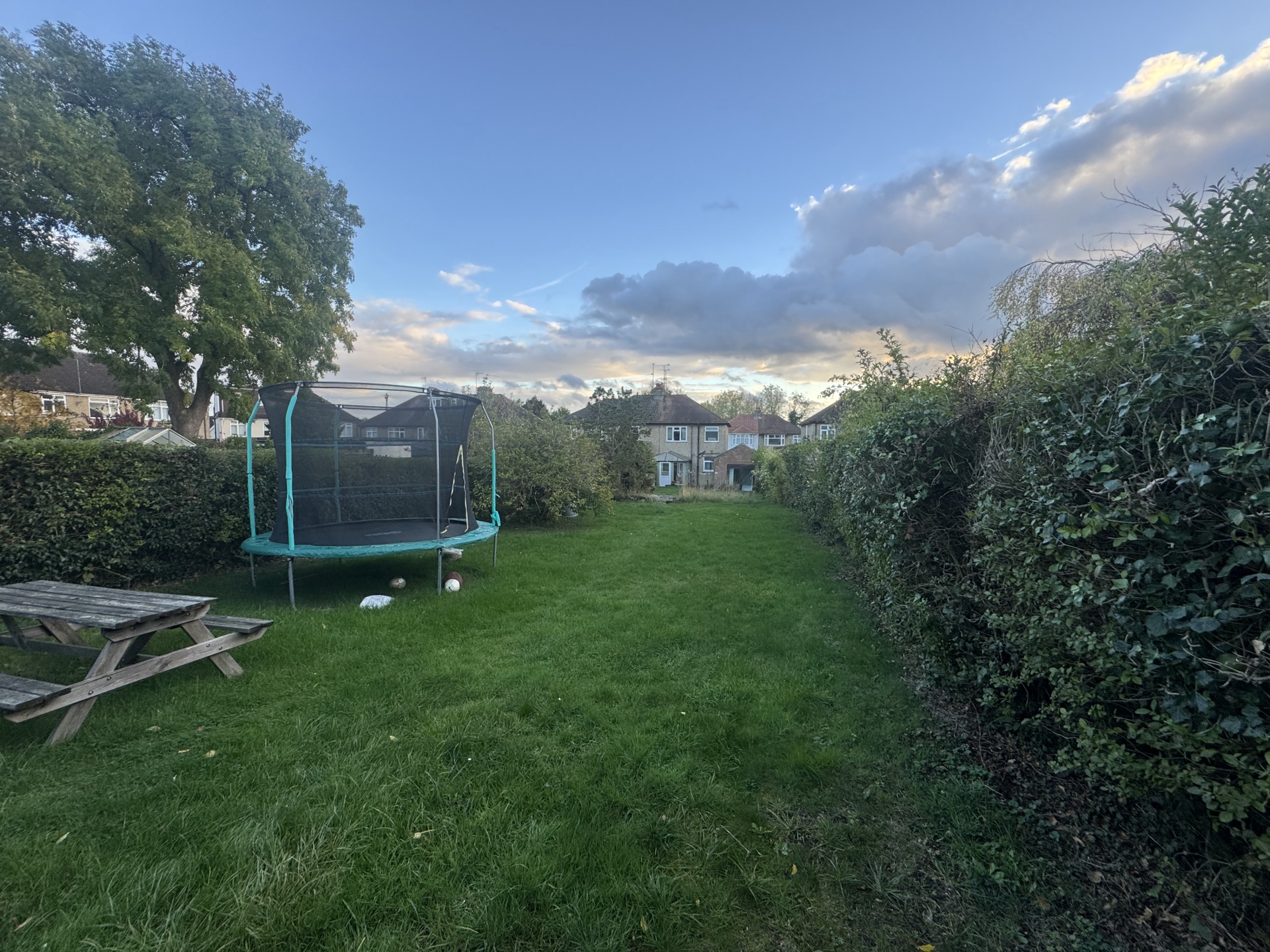 Fully enclosed garden with side access. Enclosed by well established bushes. Patio area. Raised lawn area. Gravelled area. Various trees and shrubs. Large shed/workshop at the end of garden.