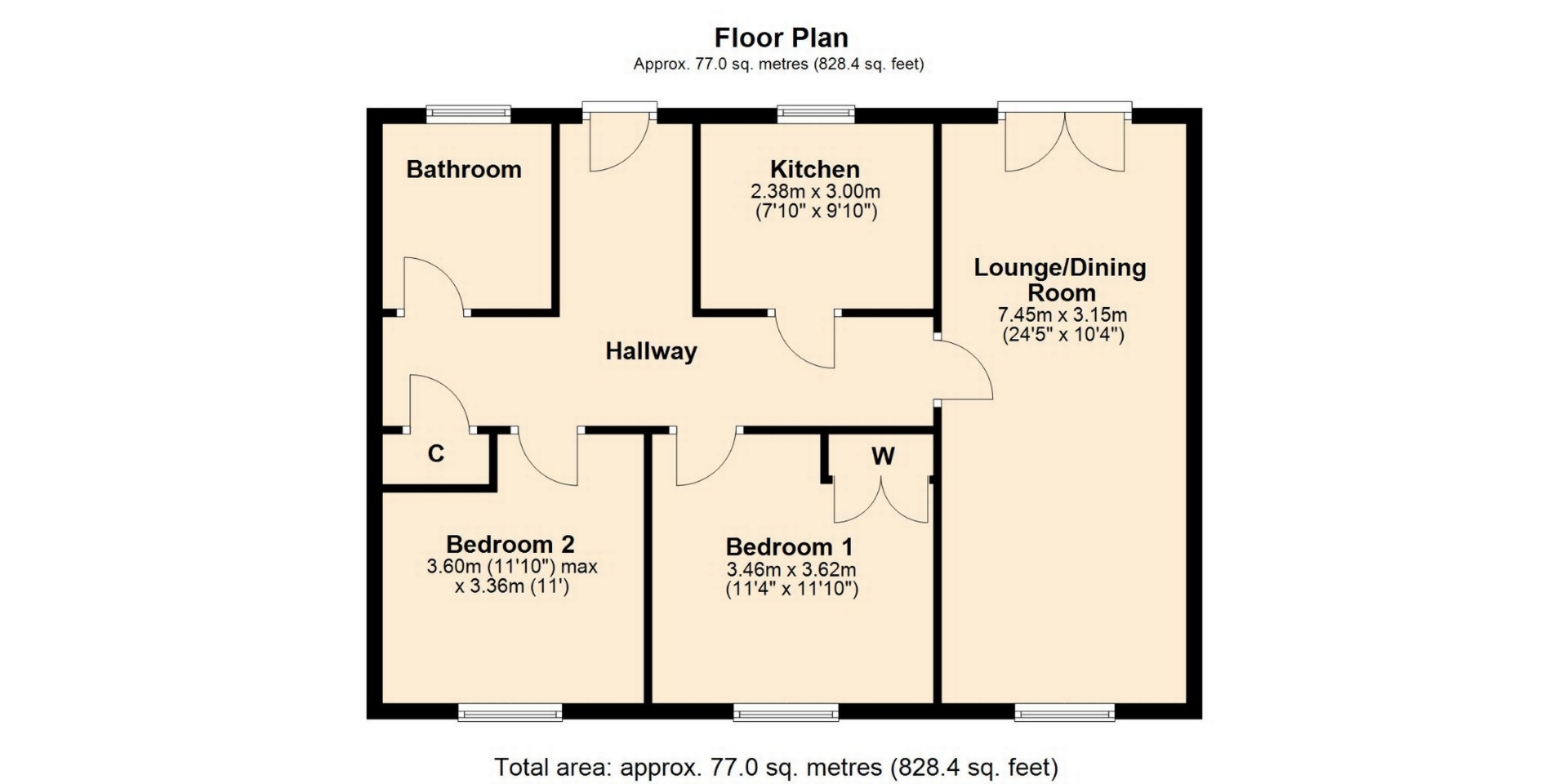 LOUNGE/DINING ROOM 7.45m x 3.15m (24’5 x 10’4)
