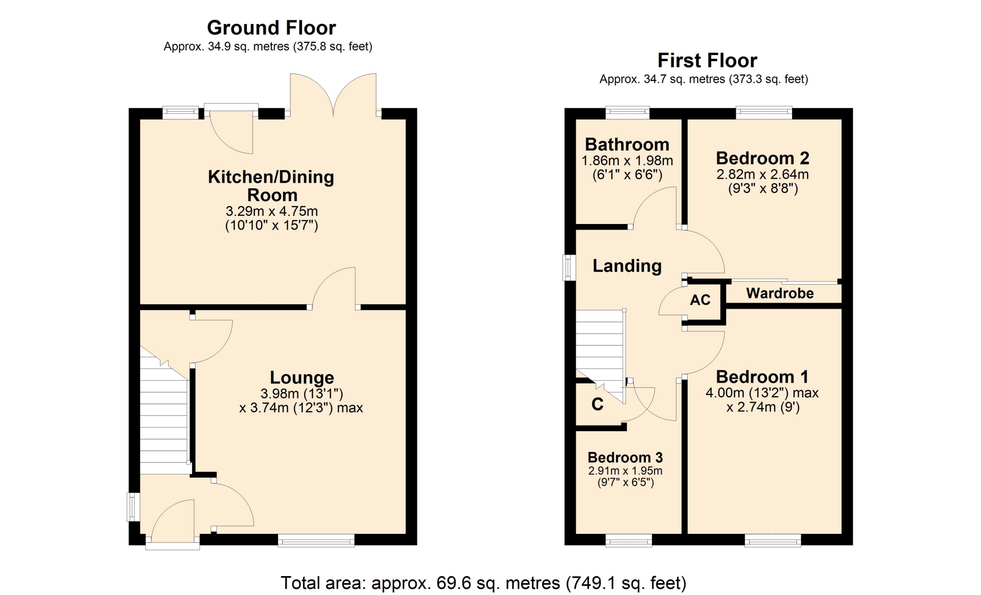 LOUNGE 3.98m x 3.74m (13' x 12'3")