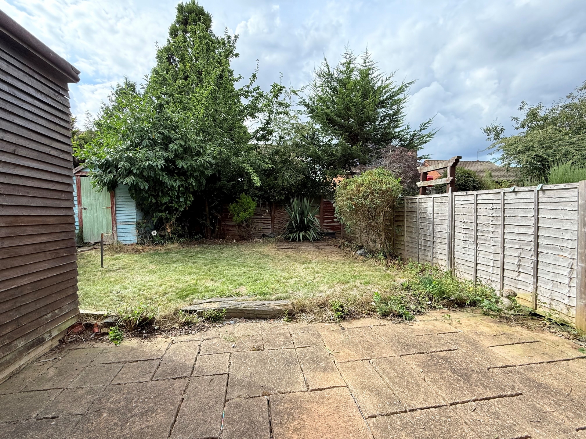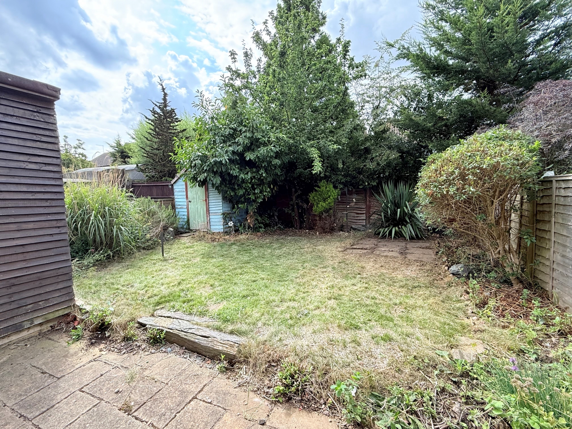 Enclosed by panelled fencing. Lawn. Patio. Shed. Access to timber framed summerhouse with power and light.