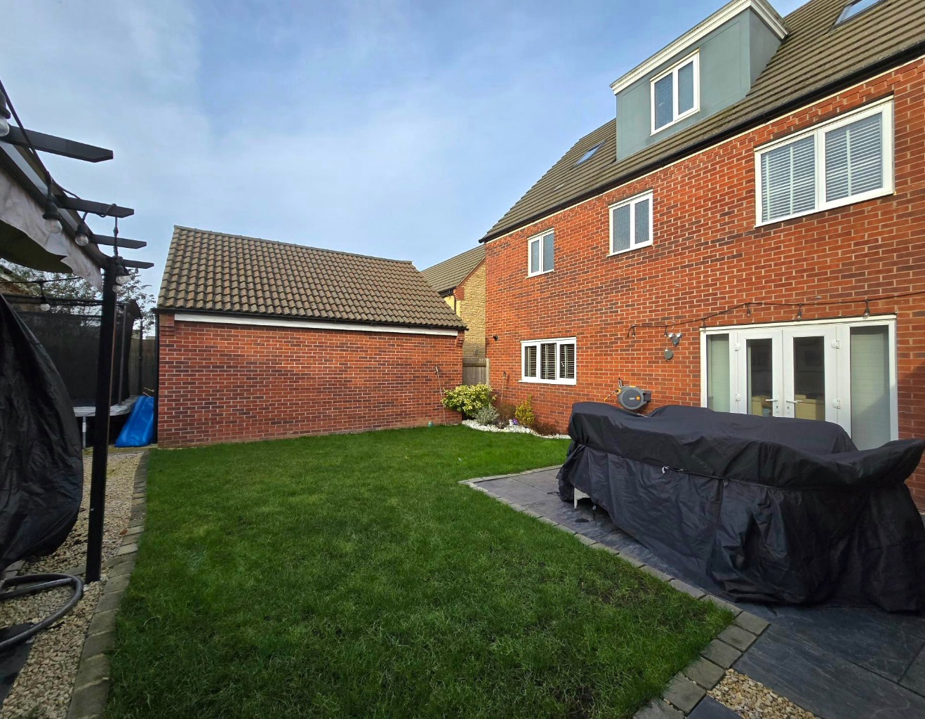 NO ONWARD CHAIN. – A stunning five bedroom, detached house enjoying an open front aspect to Upton nature reserve, situated on the desirable PINEHAM development with local amenities, including primary school and bus route through the village. Other benefits include gas central heating, double-glazing and double width driveway for at least four vehicles and a double garage. Accommodation comprises: entrance hall, study, lounge, reconfigured and upgraded utility/WC, lovely family kitchen/diner spanning the full width of the house, first floor landing serving three bedrooms (master en-suite and dressing area), family bathroom, second floor accessing two lovely double bedrooms and a shared shower room. Outside are front and rear gardens and the luxury of a double width driveway leading to a detached double garage. This property is situated on a private road behind natural hedging giving a good degree of privacy and lovely views. Viewing is highly recommended. EPC Rating: B. Council Tax Band: F