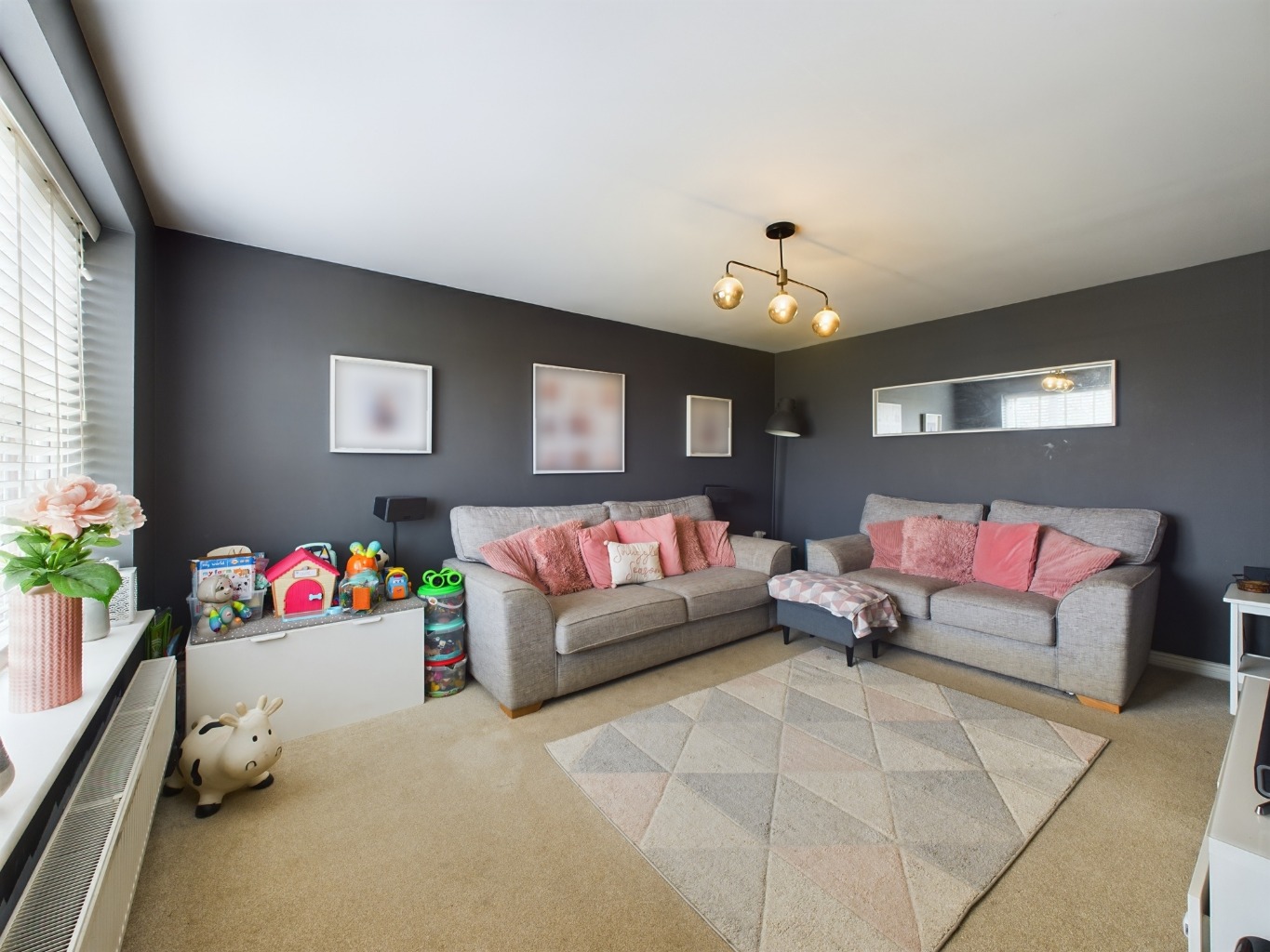 Open plan with low level shrubbery. Double width driveway for four vehicles leading to garage and side gate to garden. 7kw EV charger to side of property, facing driveway.
