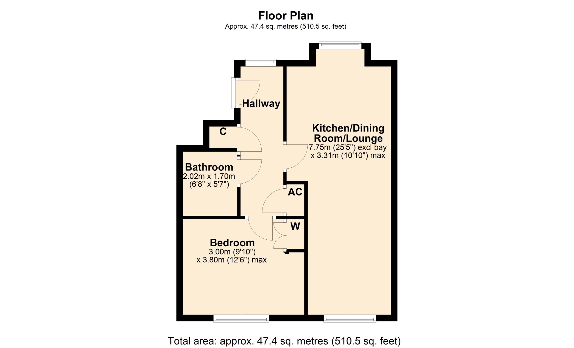 Box bay window to front elevation. Double glazed window to rear elevation. Two Radiators.