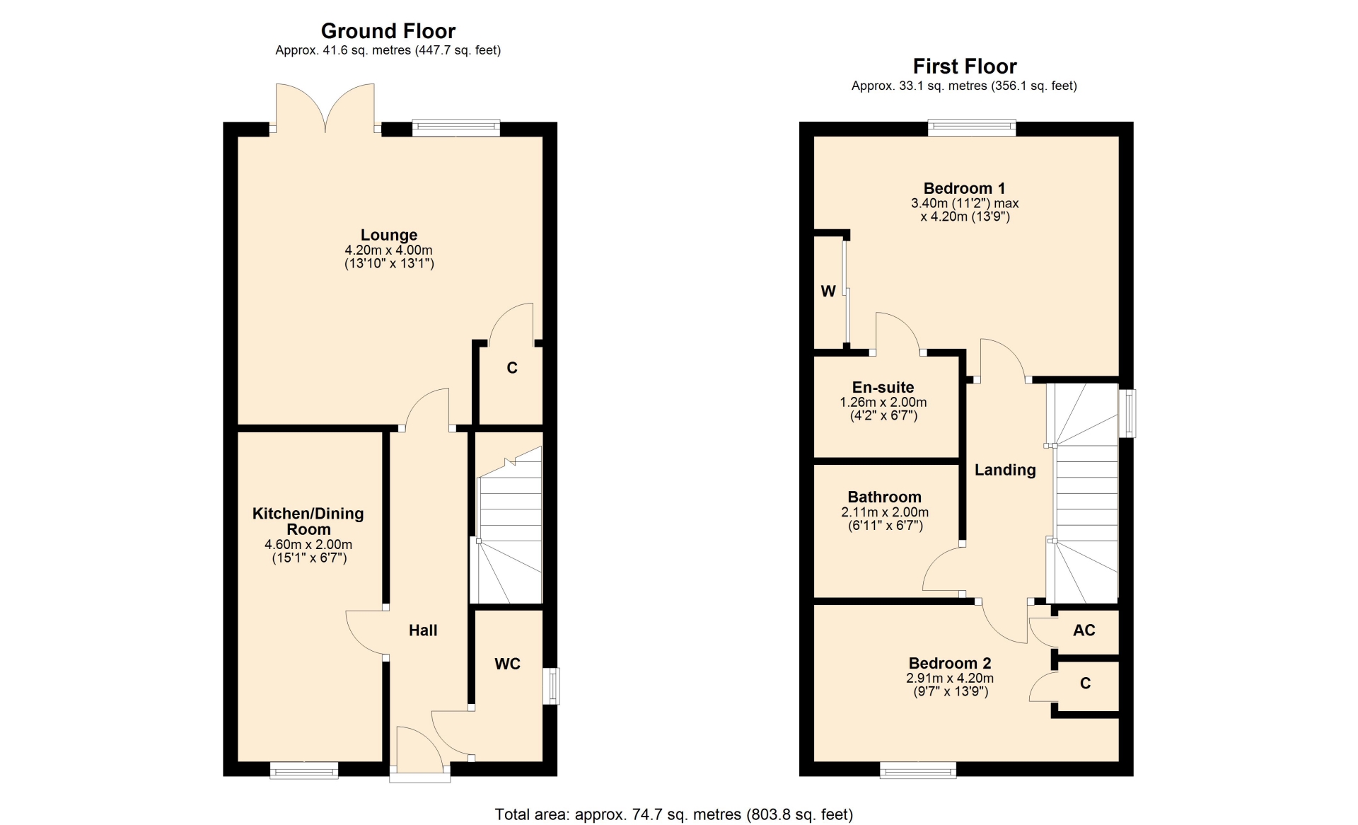 BEDROOM TWO 2.90m x 4.20m (9'6" x 13'9")