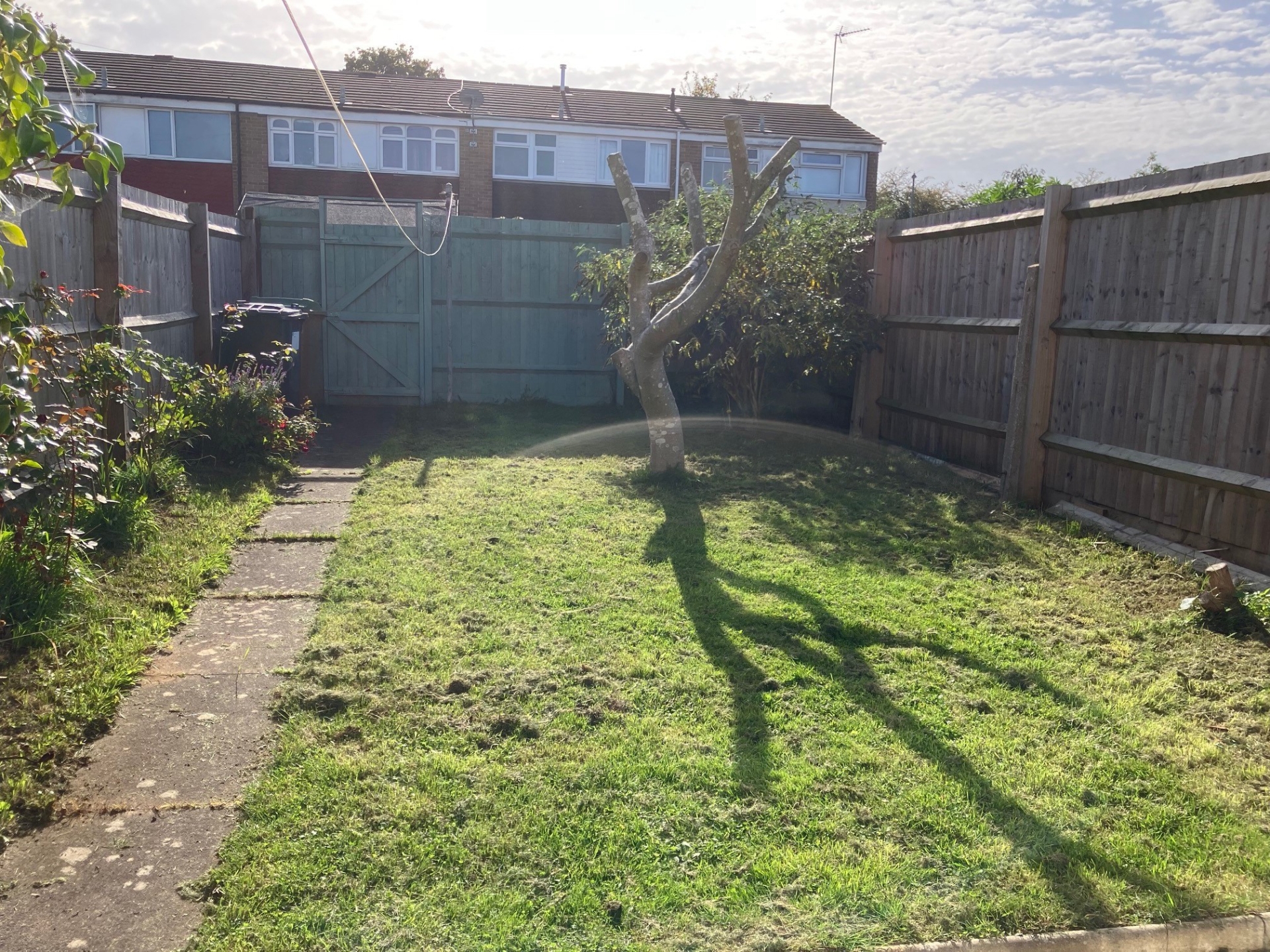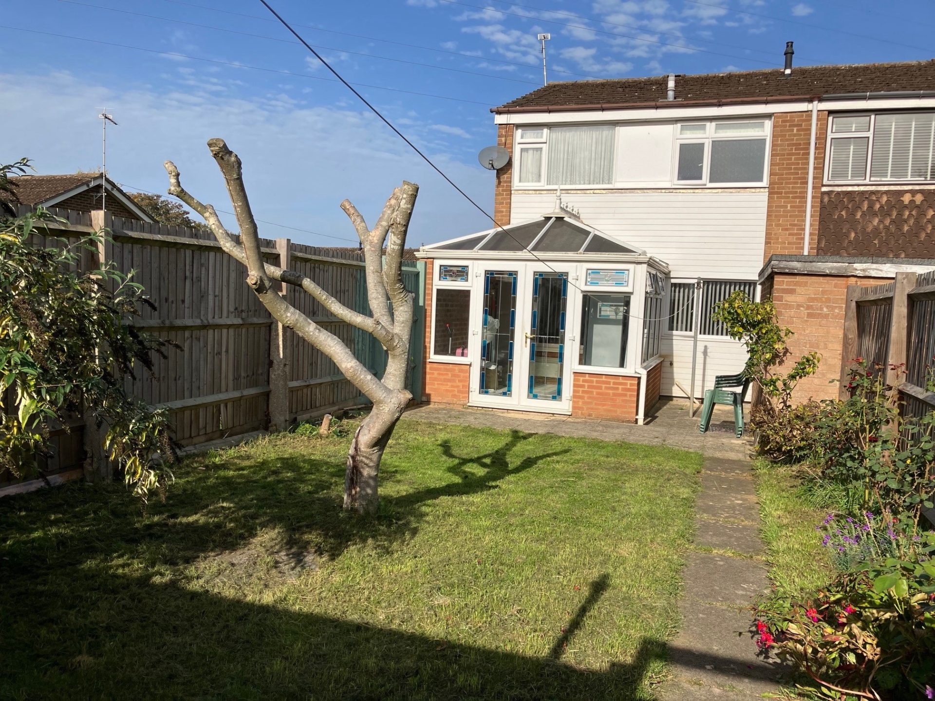Enclosed by a wooden panel fencing with rear access gate. Patio area and pathway. Mainly laid to lawn with mature trees and shrub borders.