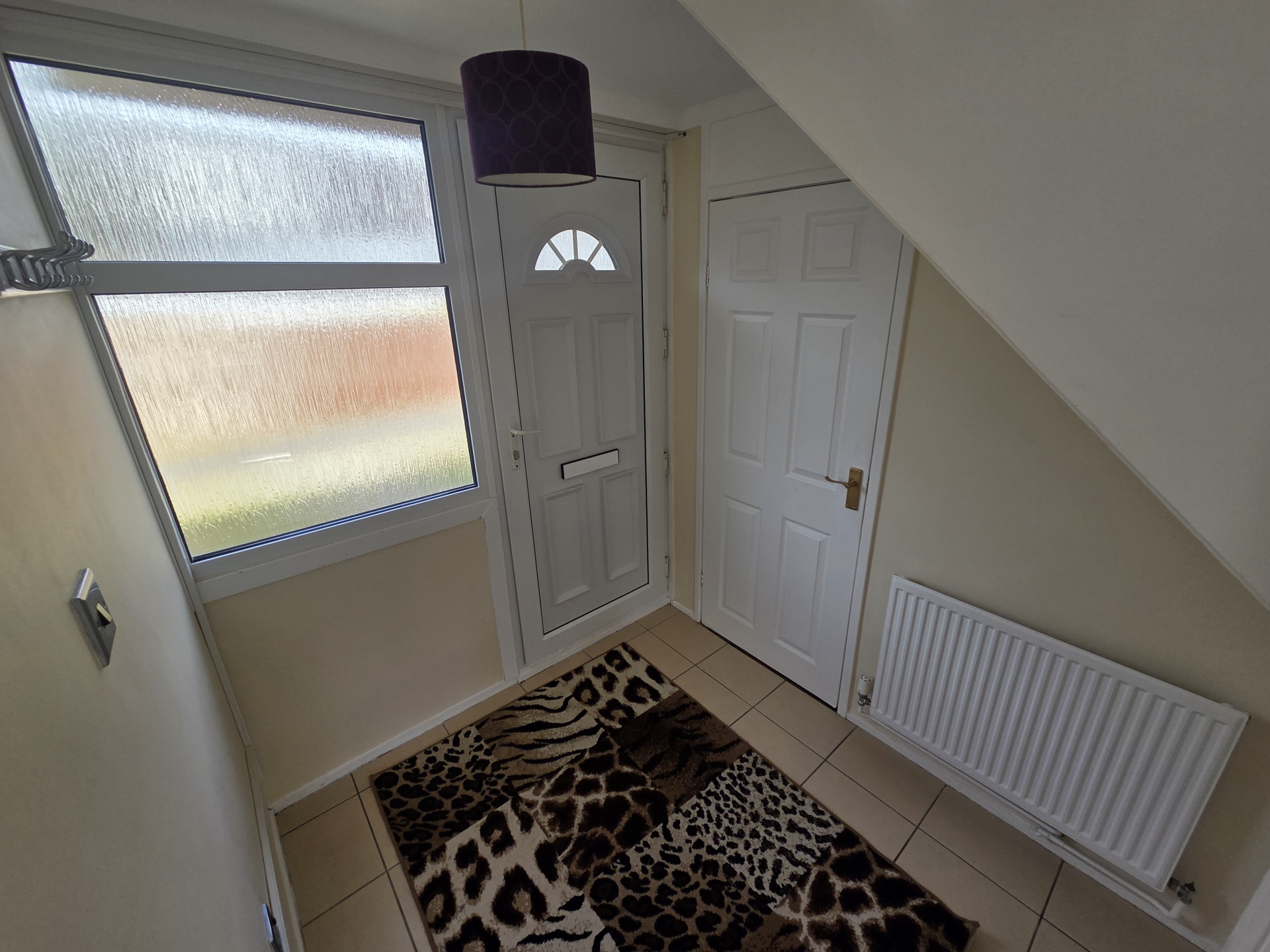 uPVC double glazed entrance door. uPVC double glazed obscure window to front elevation. Tiled flooring. Access to kitchen, WC and small storage cupboard. Radiator.