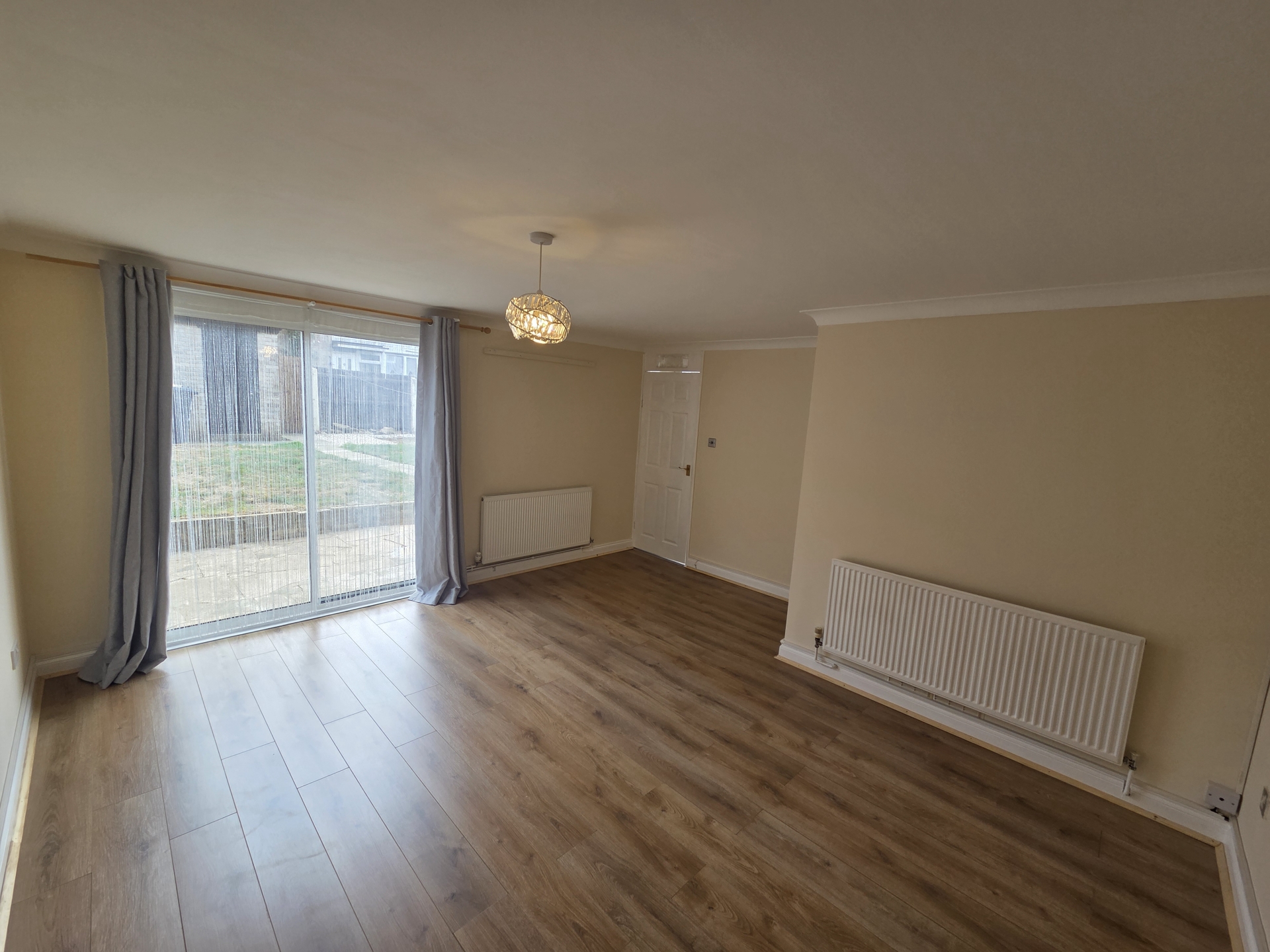 Two radiators. Laminate flooring. Sliding double glazed patio doors.