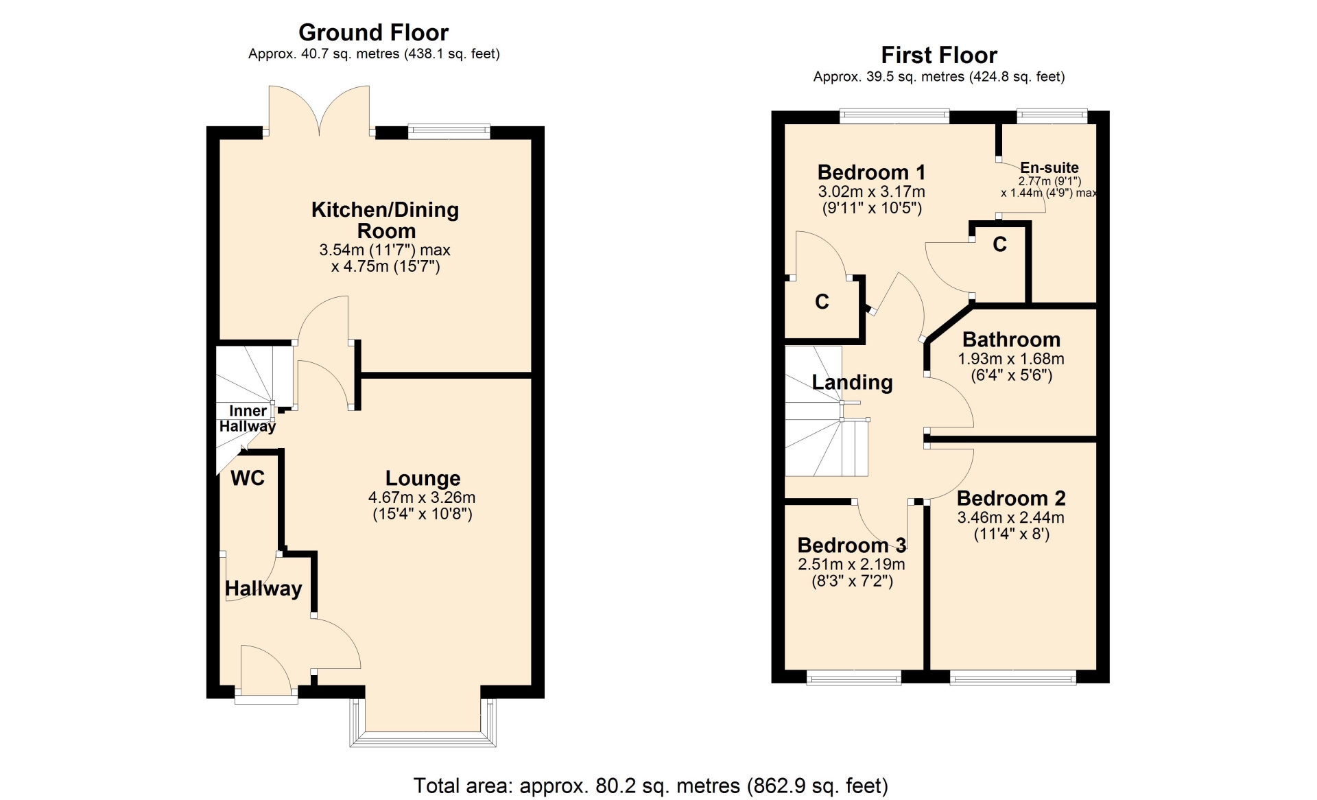 EN-SUITE 2.77m x 1.44m (9'1" x 4'8")
