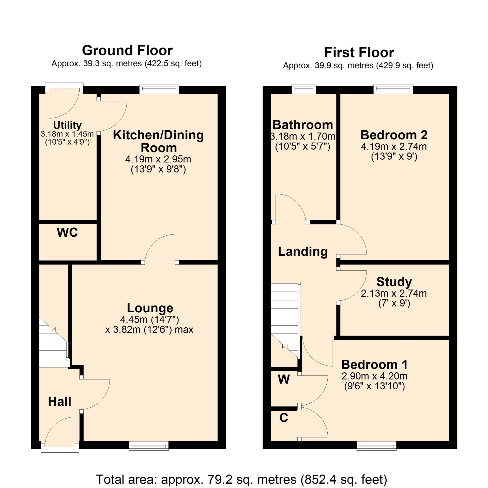 BEDROOM TWO 4.19m x 2.74m (13'9" x 9')