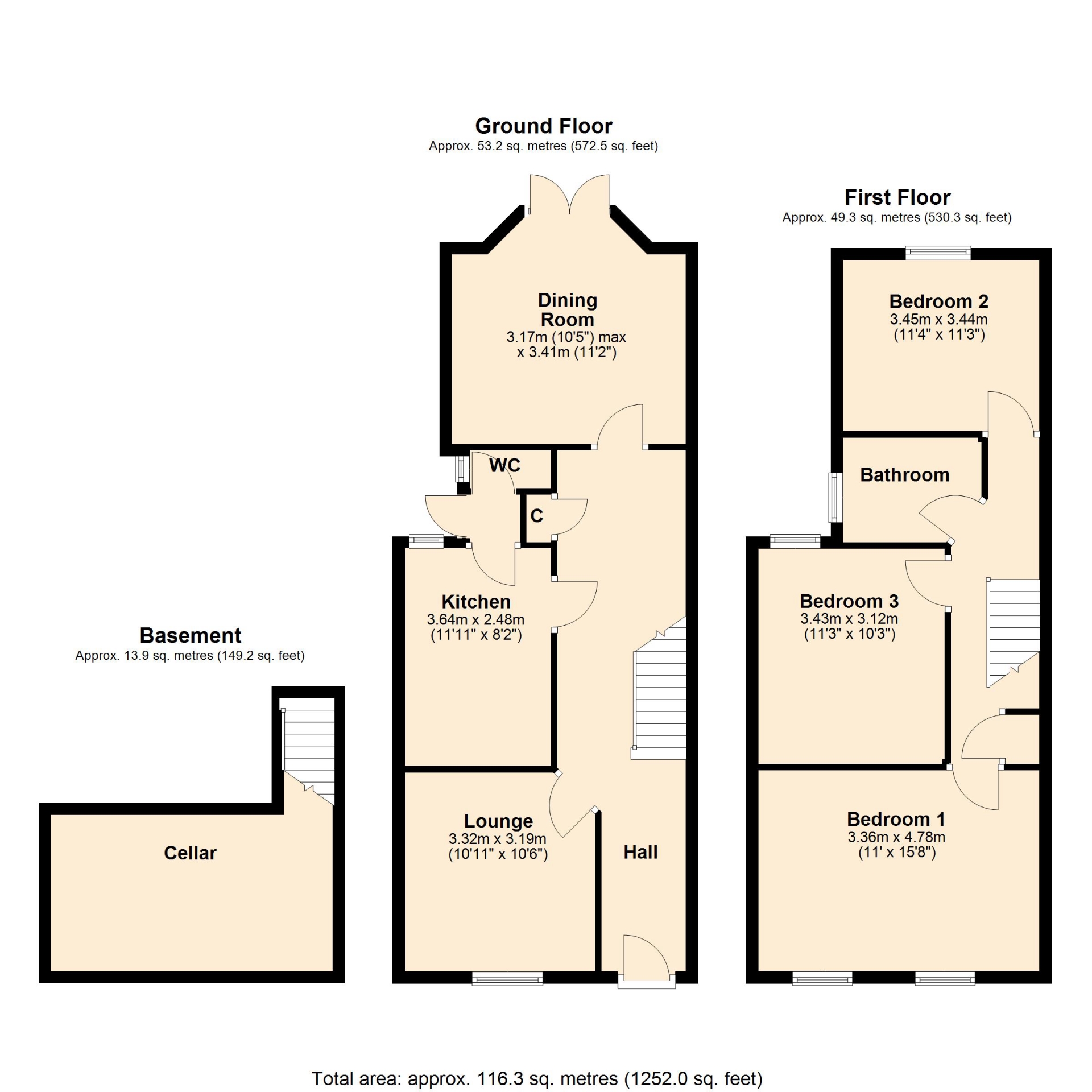 BEDROOM THREE 3.43m x 3.12m (11'3" x 10'2")