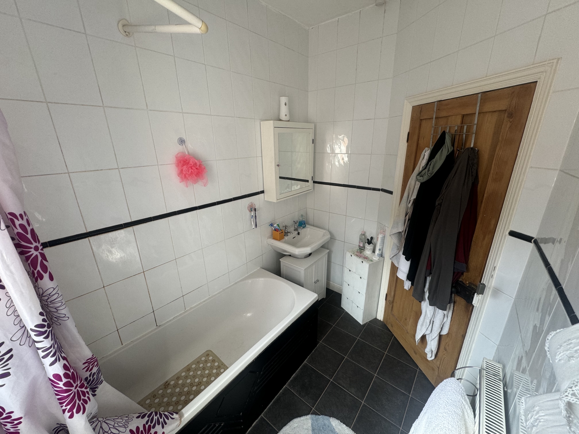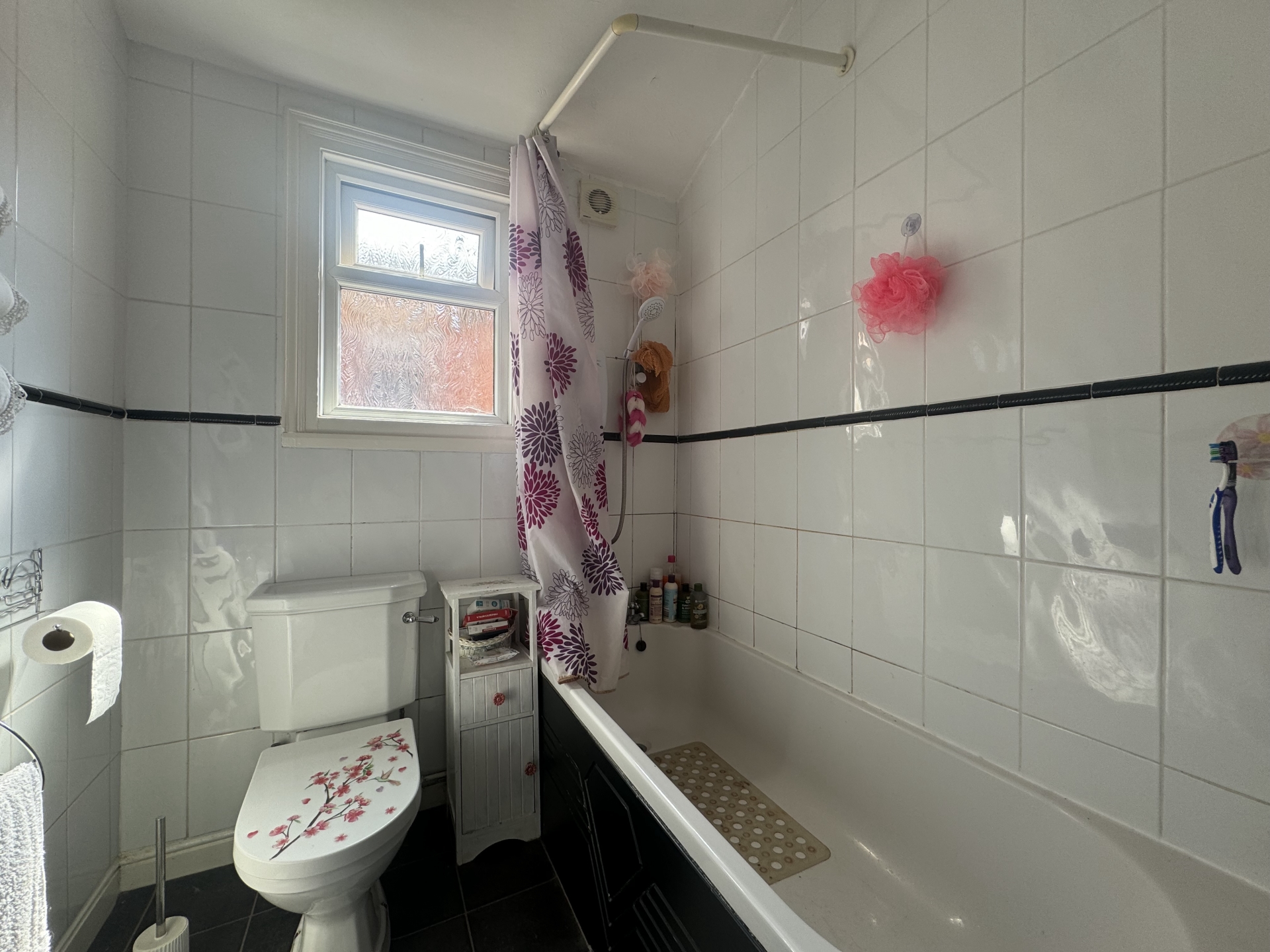 uPVC double glazed window to side elevation. Radiator. Suite comprising bath with shower over, low level WC and wash hand basin.