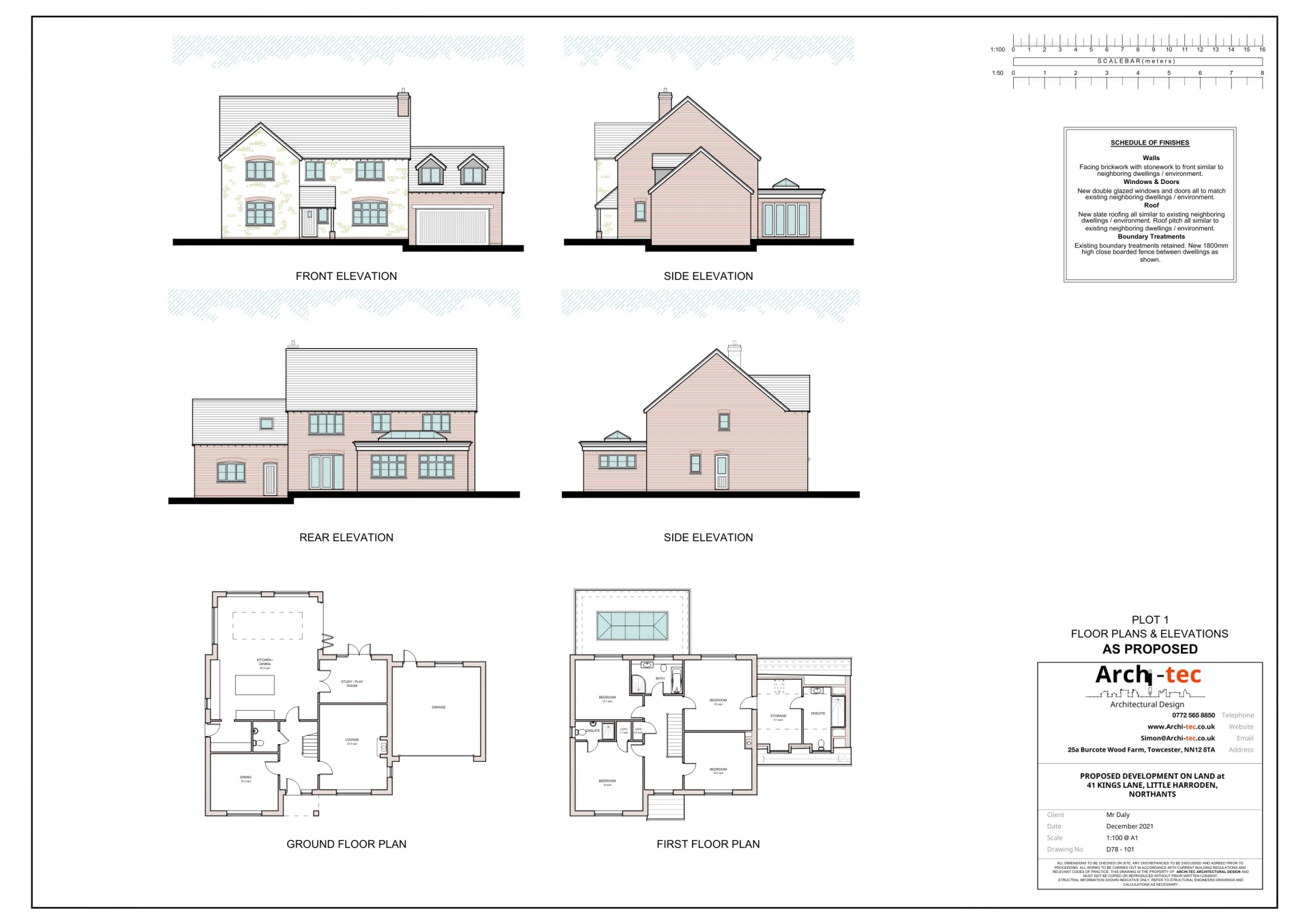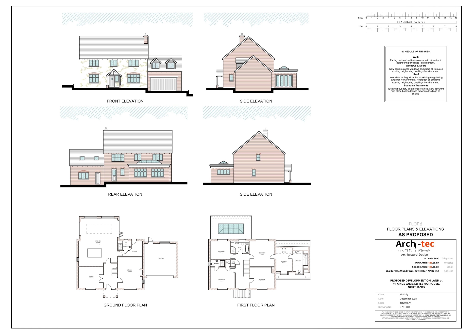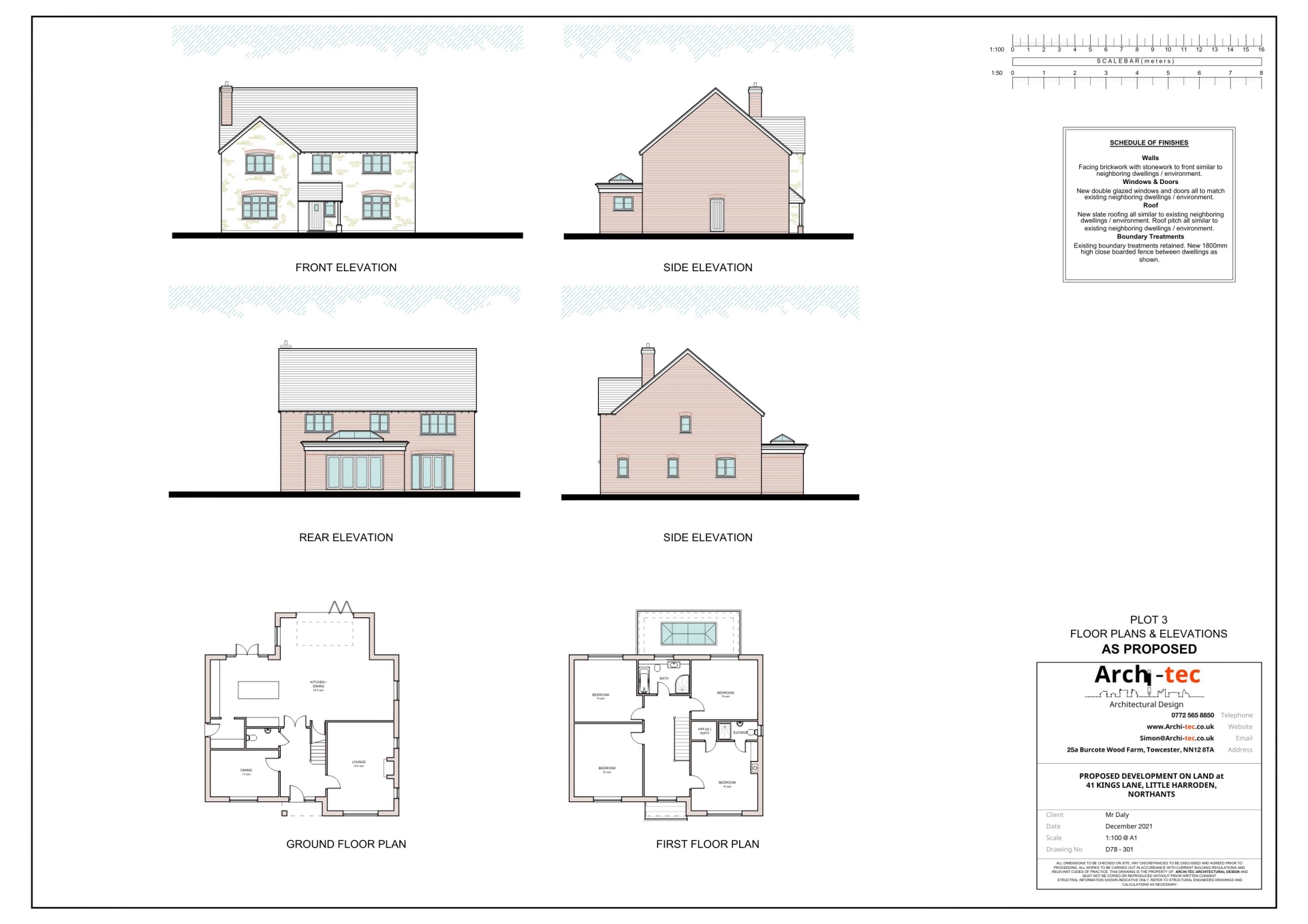 The current plans are for three four bedroom detached family homes ranging from 2200 sq ft to 2700 sq ft all with double garages. All this still leaves a fourth plot measuring a third of an acre with potential for further development subject to planning