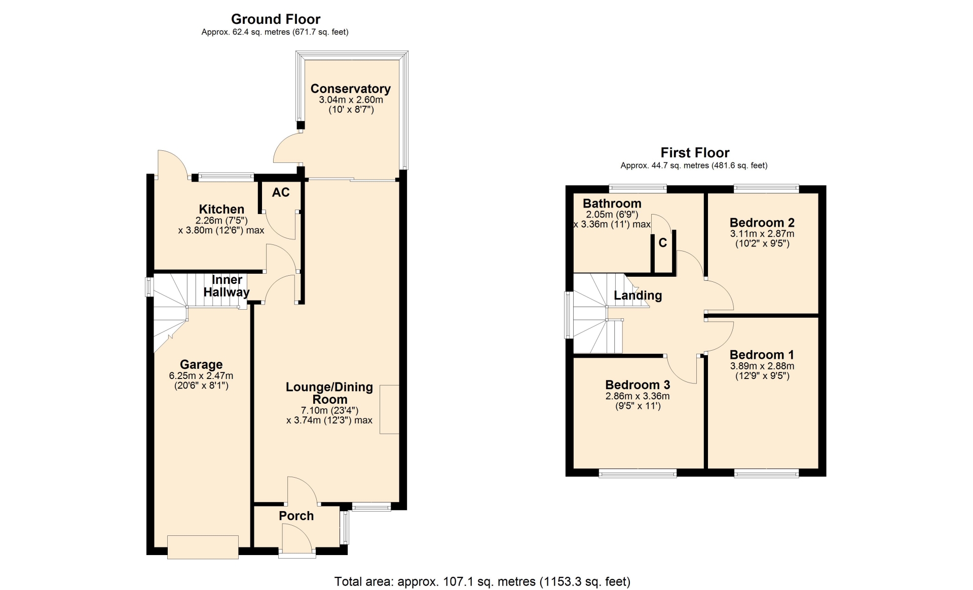 BEDROOM THREE 2.86m x 3.36m (9'4" x 11')