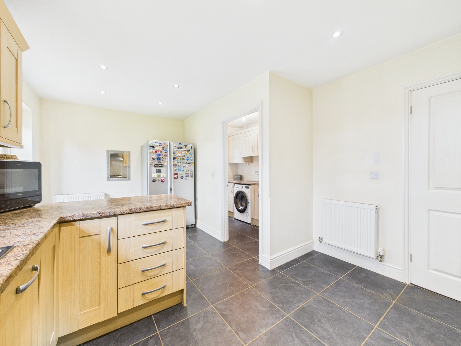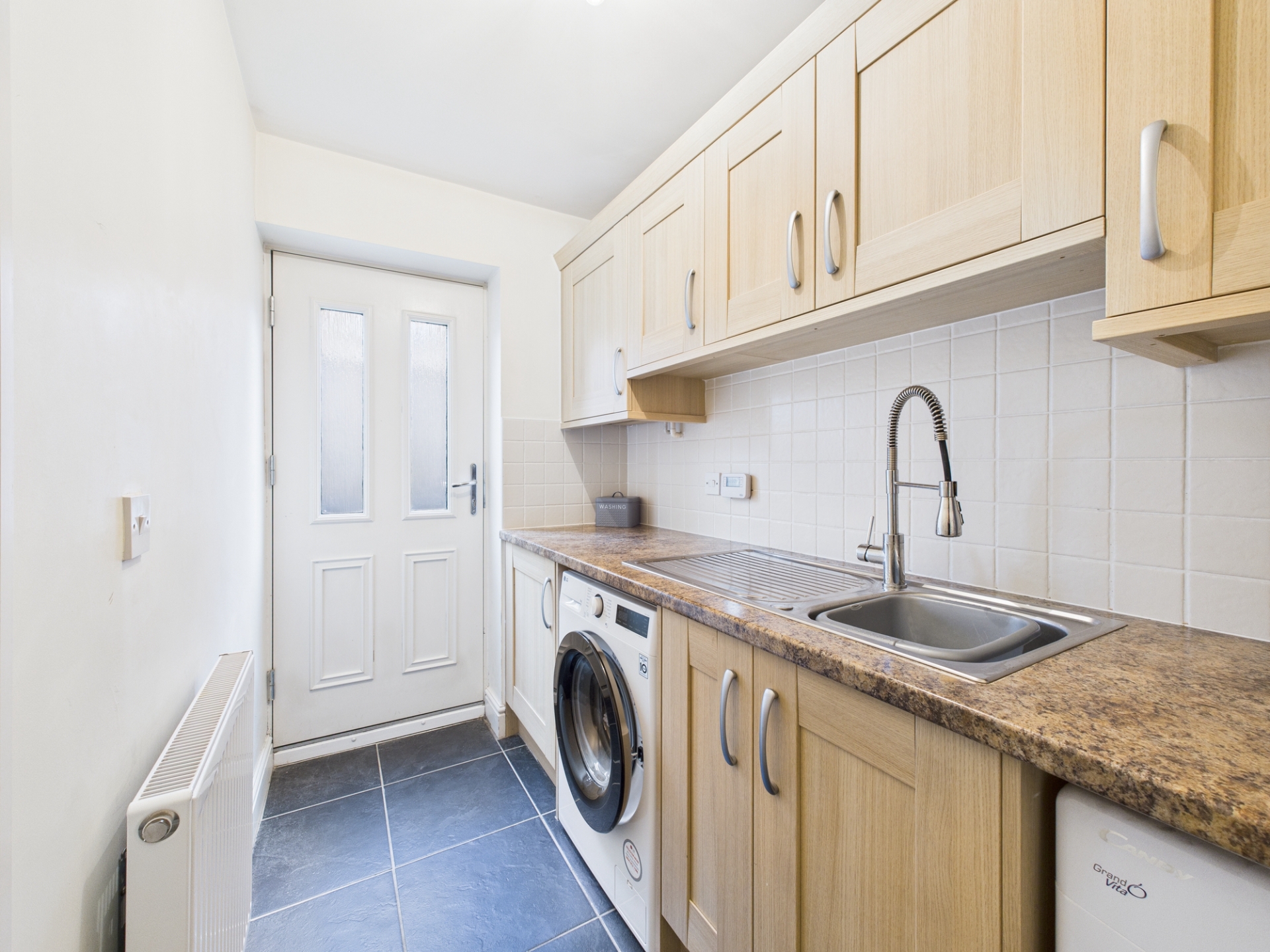 Composite door to side elevation. Radiator. Wall mounted and base units. Plumbing for washing machine. Sink in mixer tap.